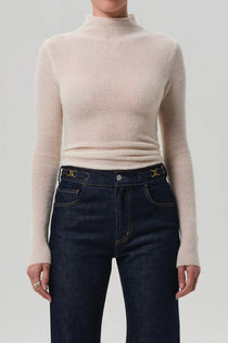 Fine‑gauge cashmere, merino wool, silk blends, and ribbed knits work beautifully as base layers. They insulate without adding bulk and allow additional pieces to layer smoothly on top. A fitted turtleneck, a softly sculpted long‑sleeve knit, or a slim mock neck provides warmth while maintaining clean lines.