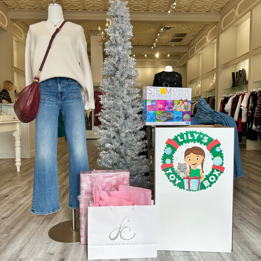 Join us in supporting Lily’s Toy Box this holiday season! Bring a new, unwrapped toy to donate at our Tanglewood and Town & Country locations and receive one raffle entry for every toy you give now until December 13th. One lucky winnner will recieve a $500 French Cuff Boutique Gift Card!