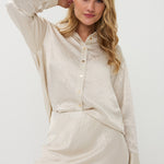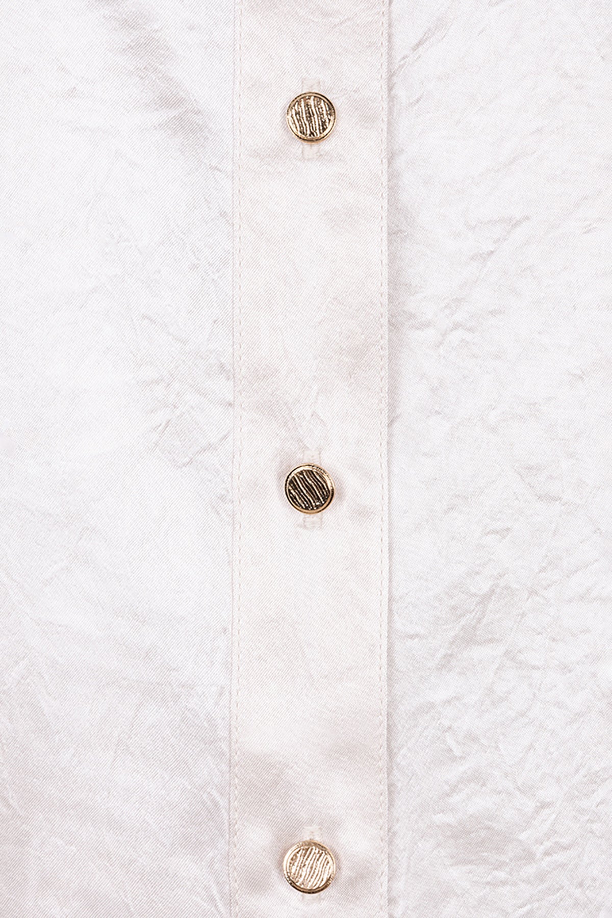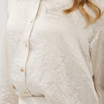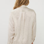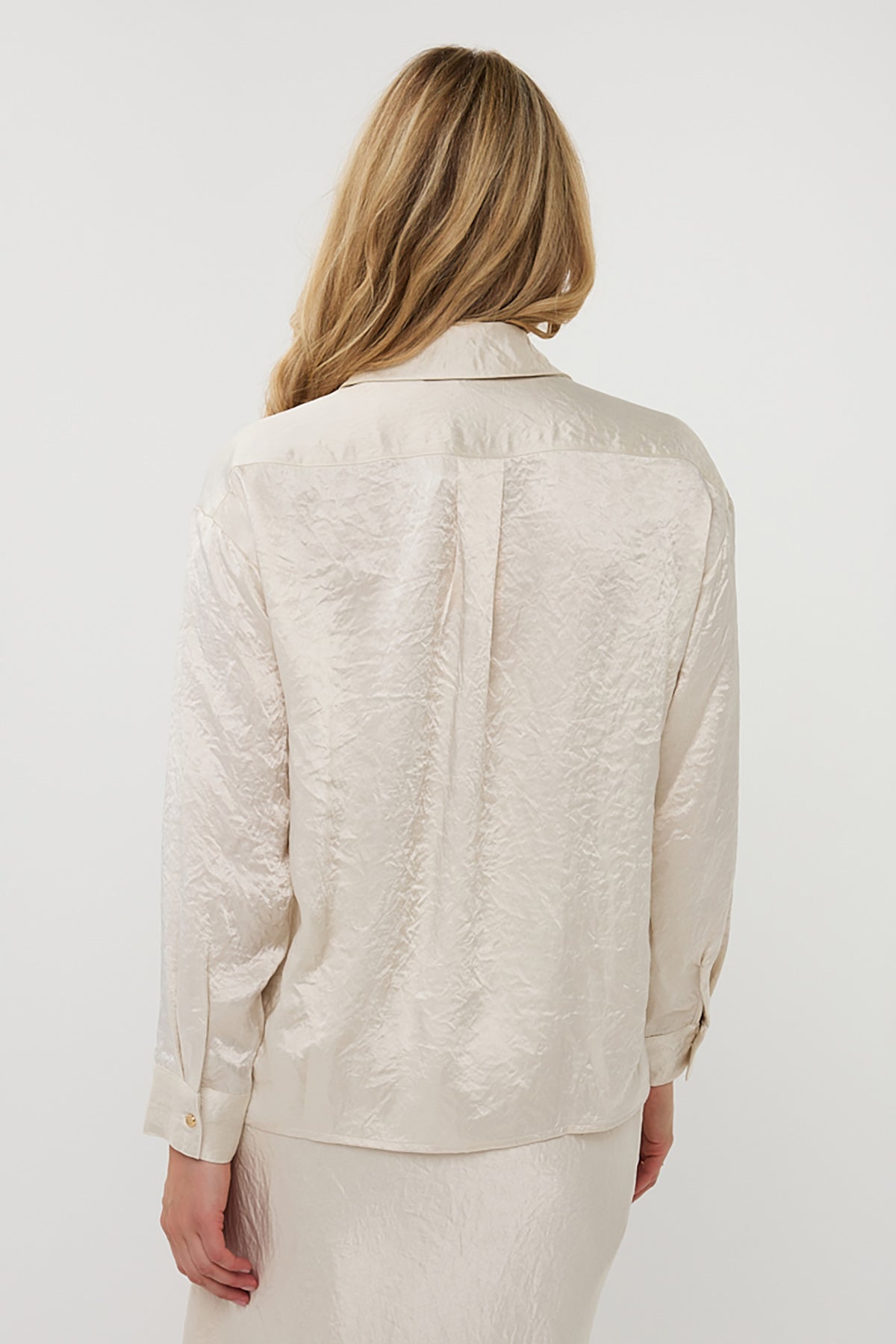 This acetate blouse offers a smooth, lightweight feel with a subtle sheen, making it perfect for both work and stylish occasions. Its breathable fabric ensures comfort while adding a modern, polished touch to any outfit.
