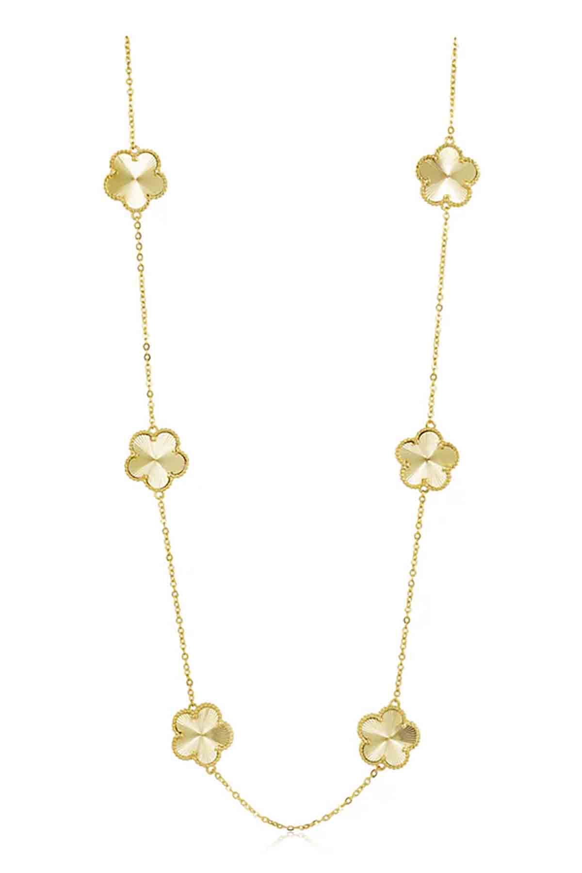 The Adeline Clover Necklace features a delicate clover pendant, adding a simple and stylish touch of luck to any outfit.
