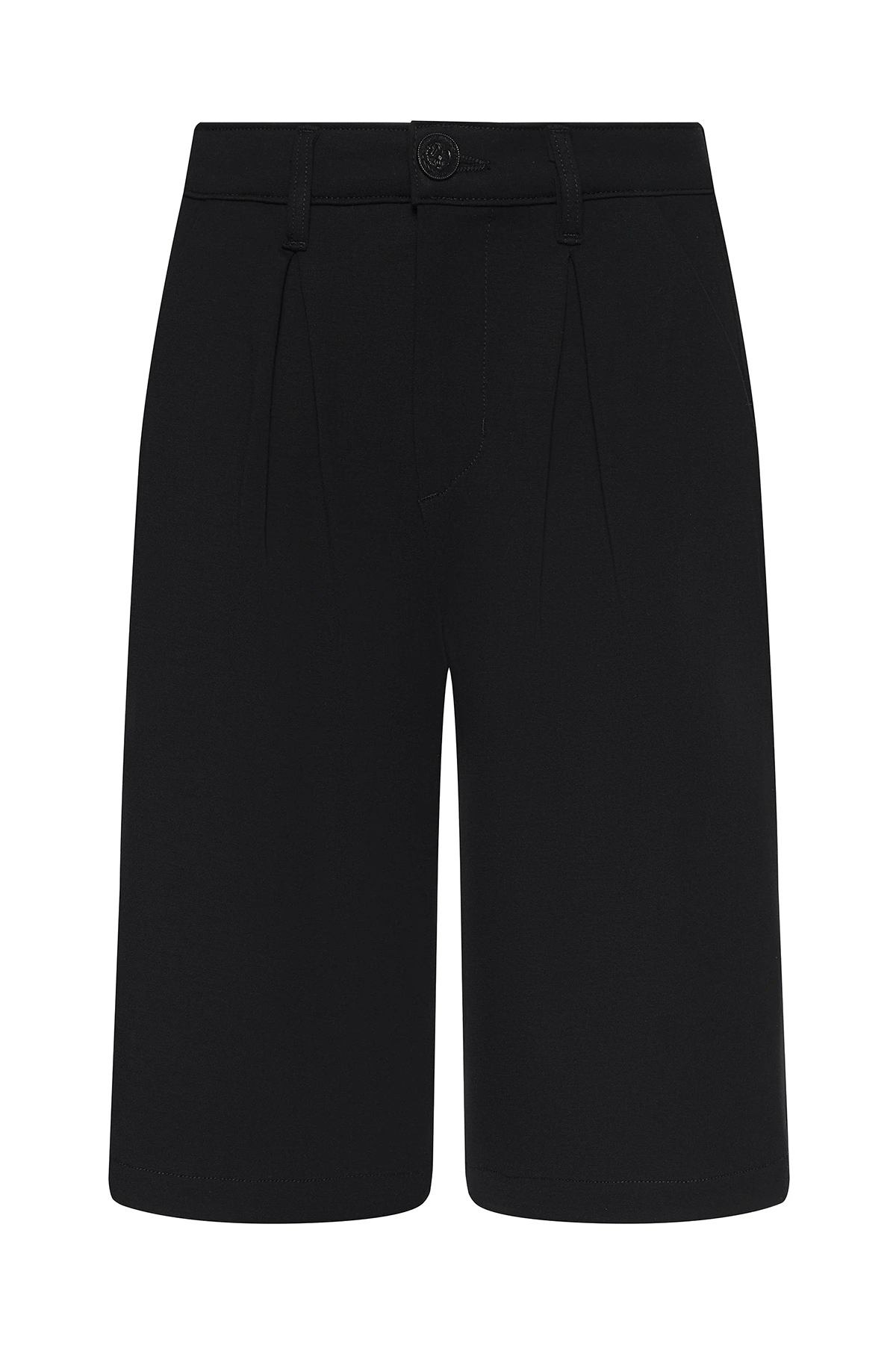 Tailored and modern, these Bermuda shorts feature crisp pleating and a refined length. The high-rise design creates a flattering, structured look.
