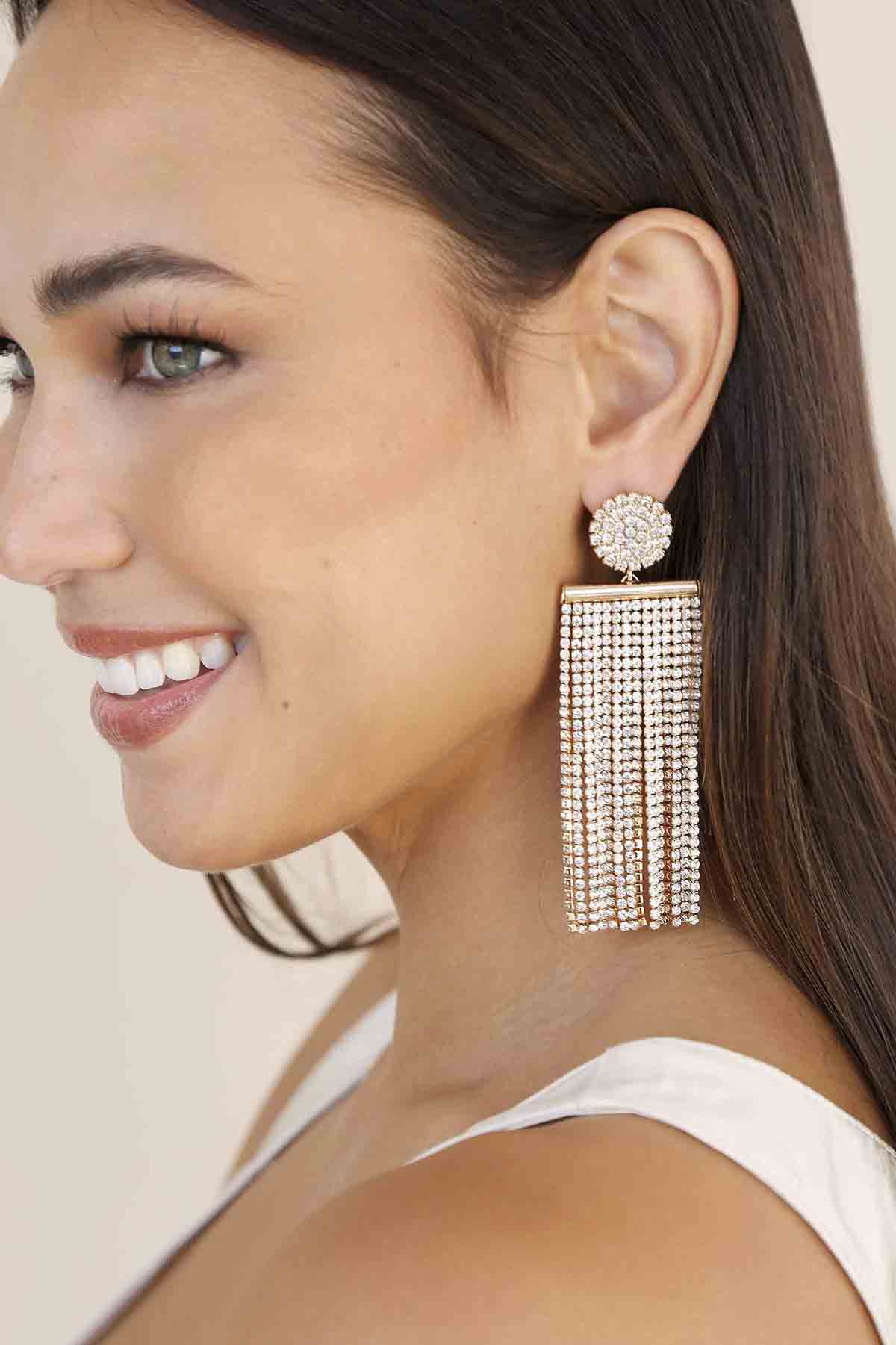 All the Movement Crystal Fringe 18k Gold Plated Earringsby French Cuff Boutique