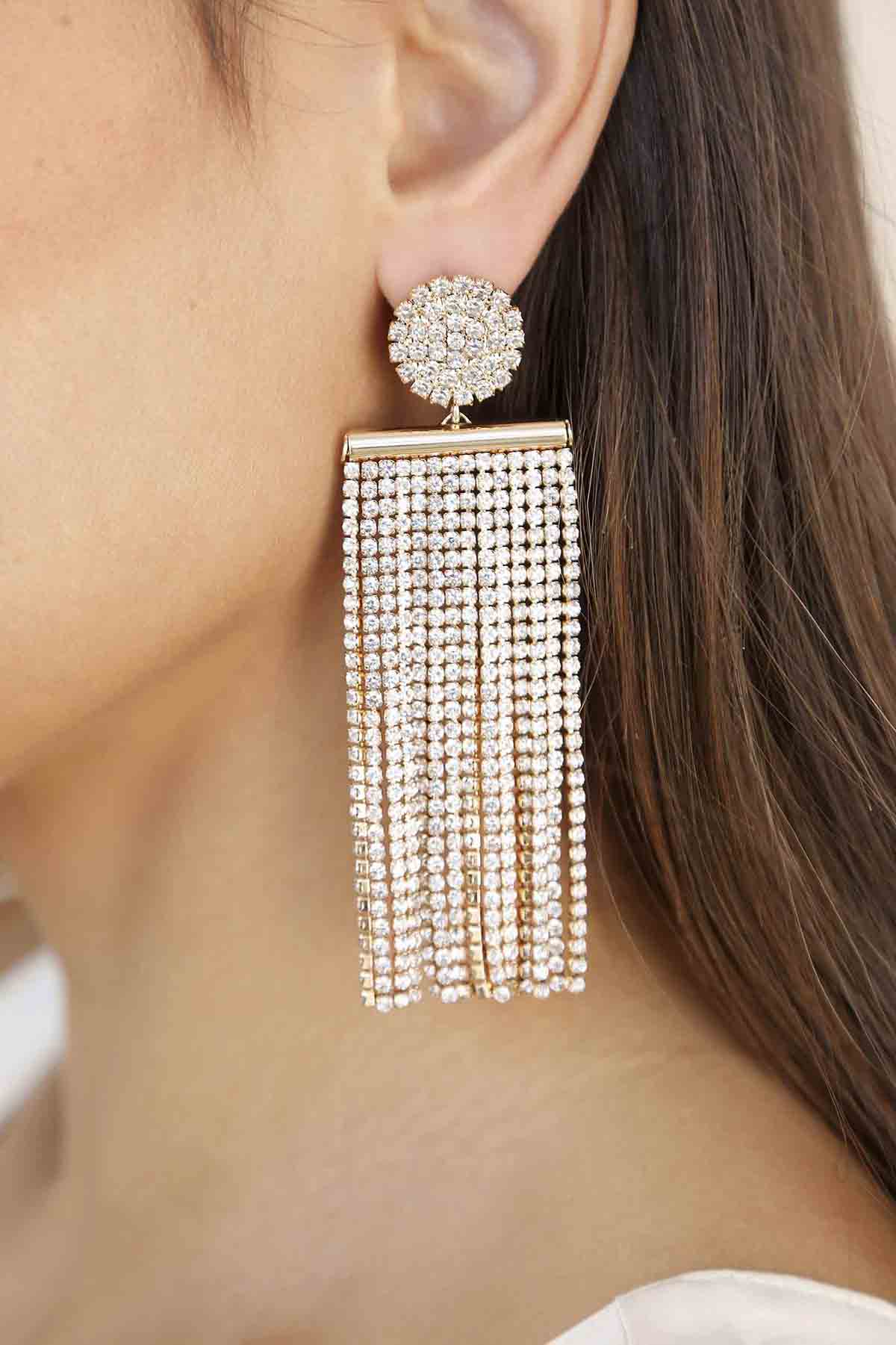 All the Movement Crystal Fringe 18k Gold Plated Earrings