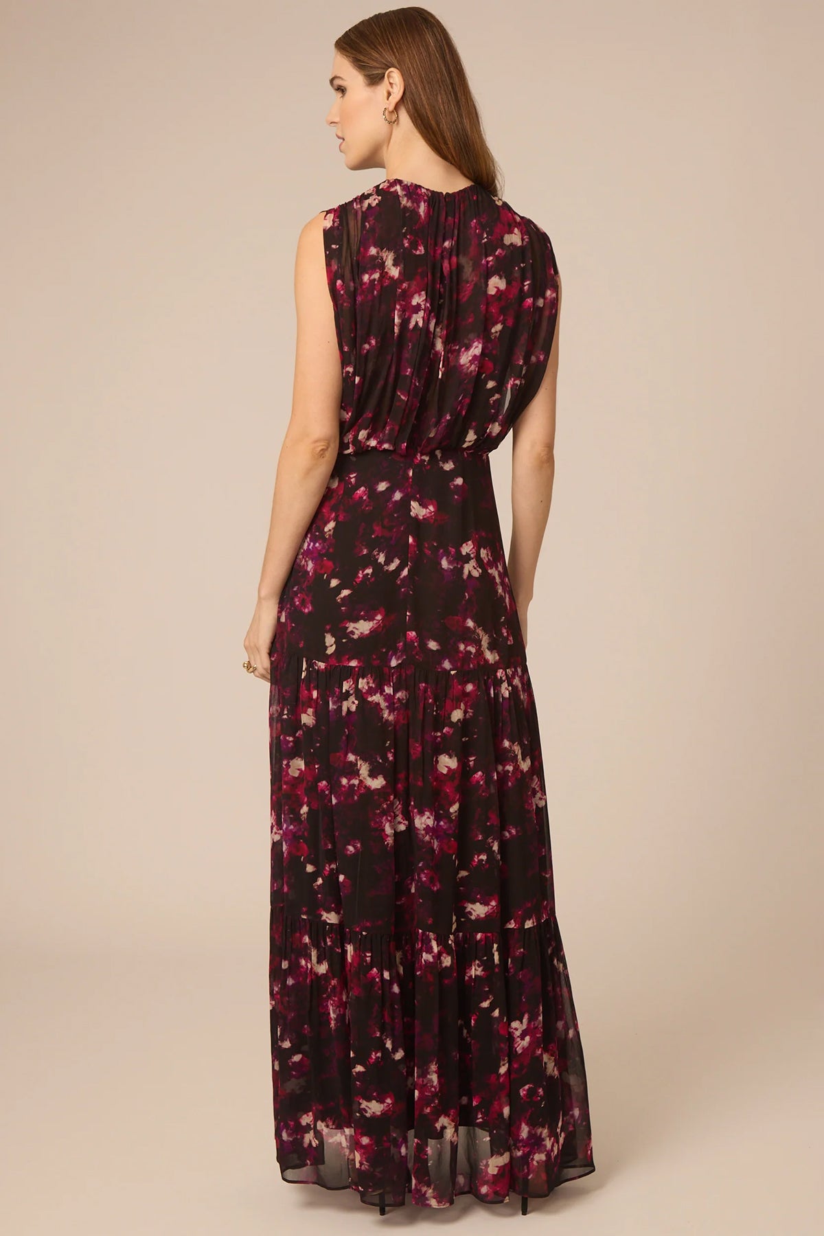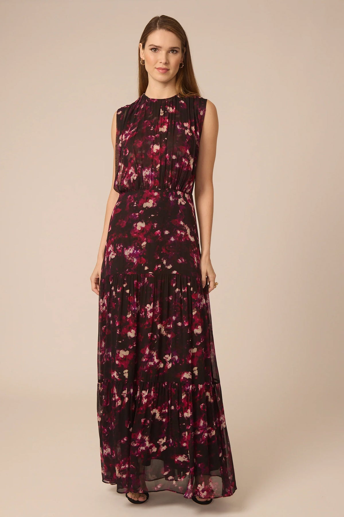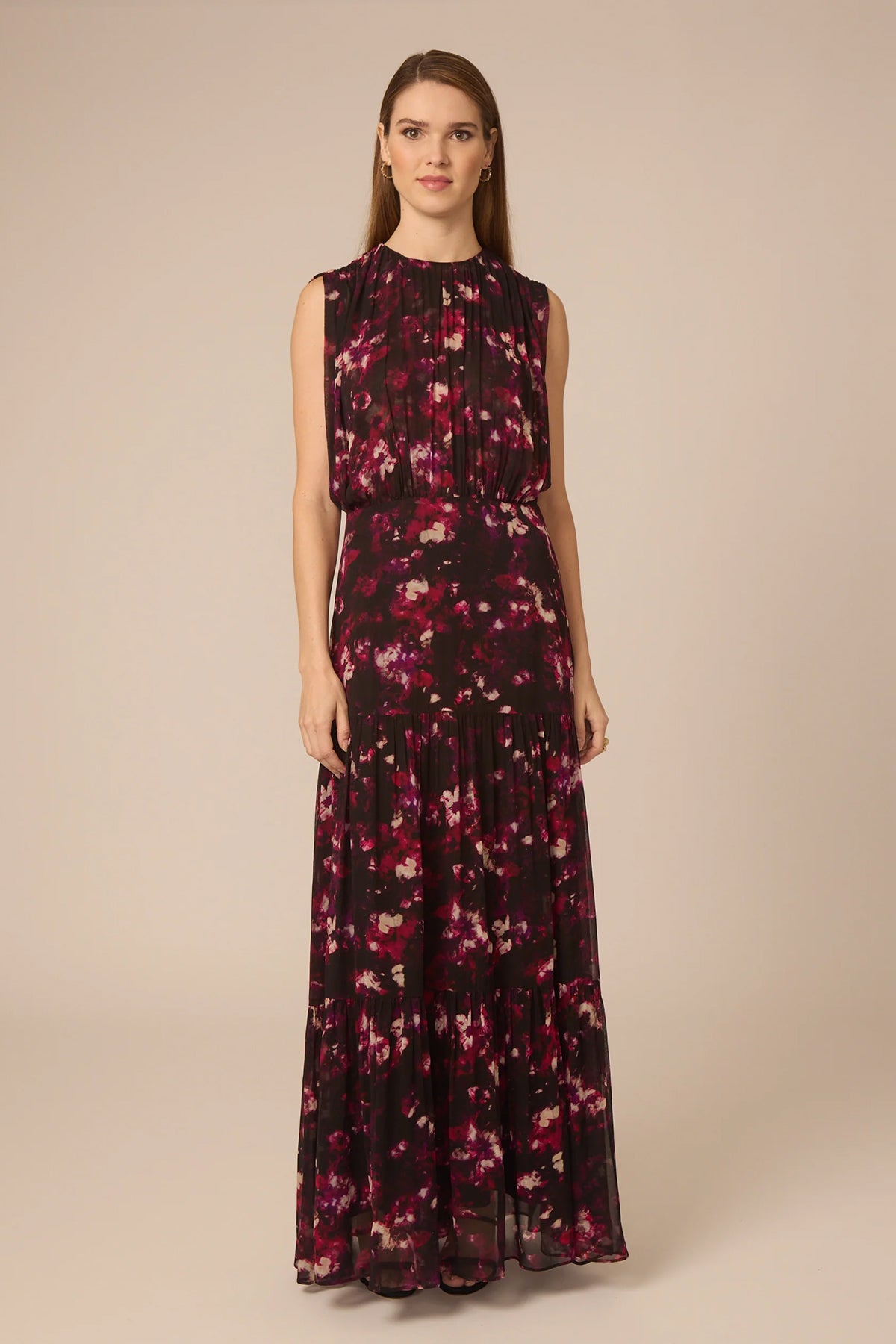 Elegant and versatile, the Amelia dress features a moody smokey floral print in burgundy with a sleek sleeveless midi cut. A timeless piece for any elevated occasion!