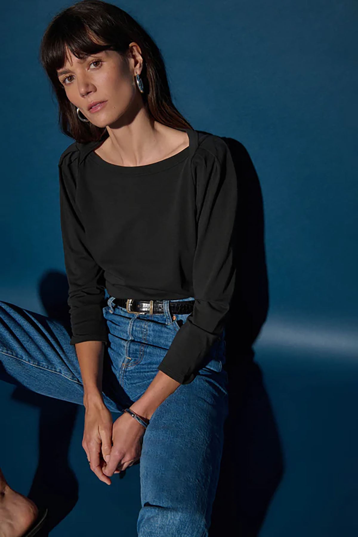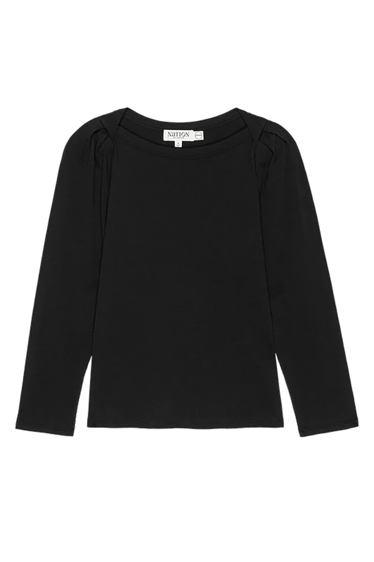The Amelie Envelope Neck Top has a stylish neckline and a sleek design, perfect for both casual and dressy looks.
