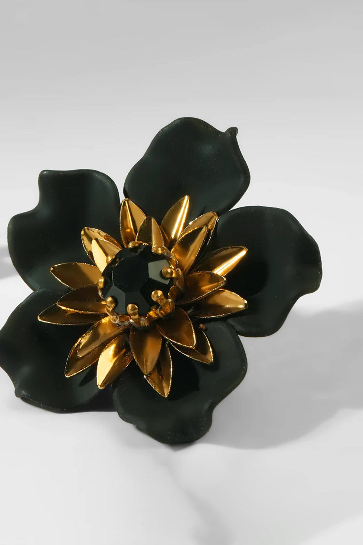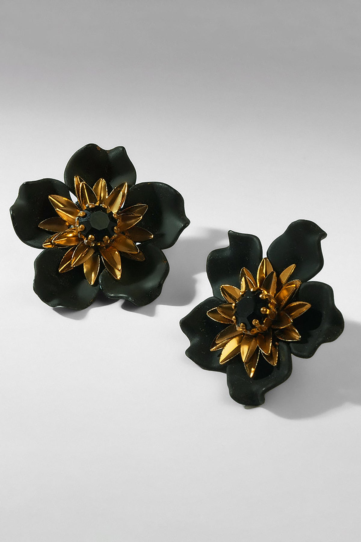 Black and gold flower studs with striking style. Bold enough to stand out, versatile enough for any occasion.