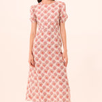 A midi dress featuring a striking paisley block pattern in warm, ripened hues. The color-blocked design adds visual depth while the classic length works for any occasion, from casual outings to special events.
