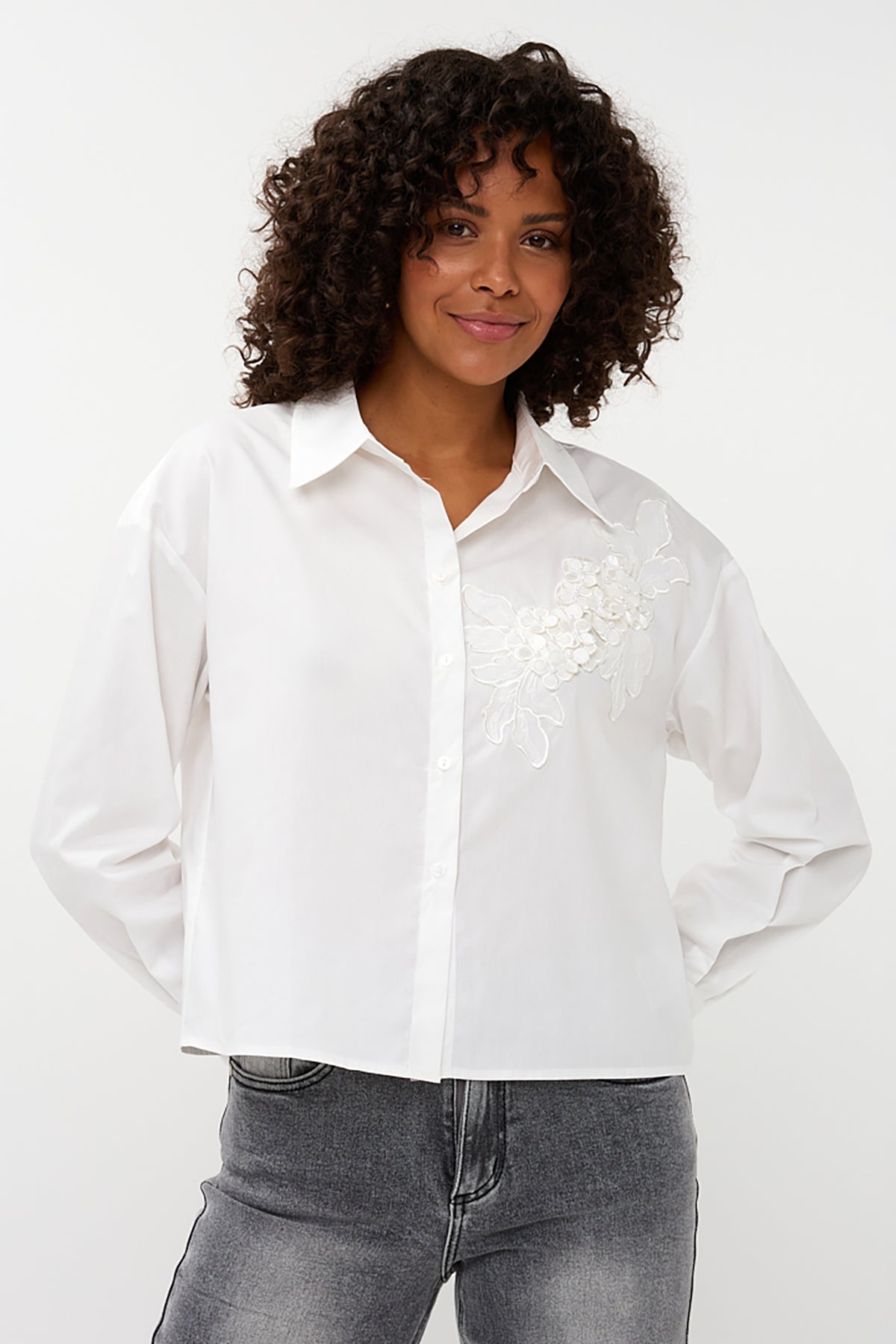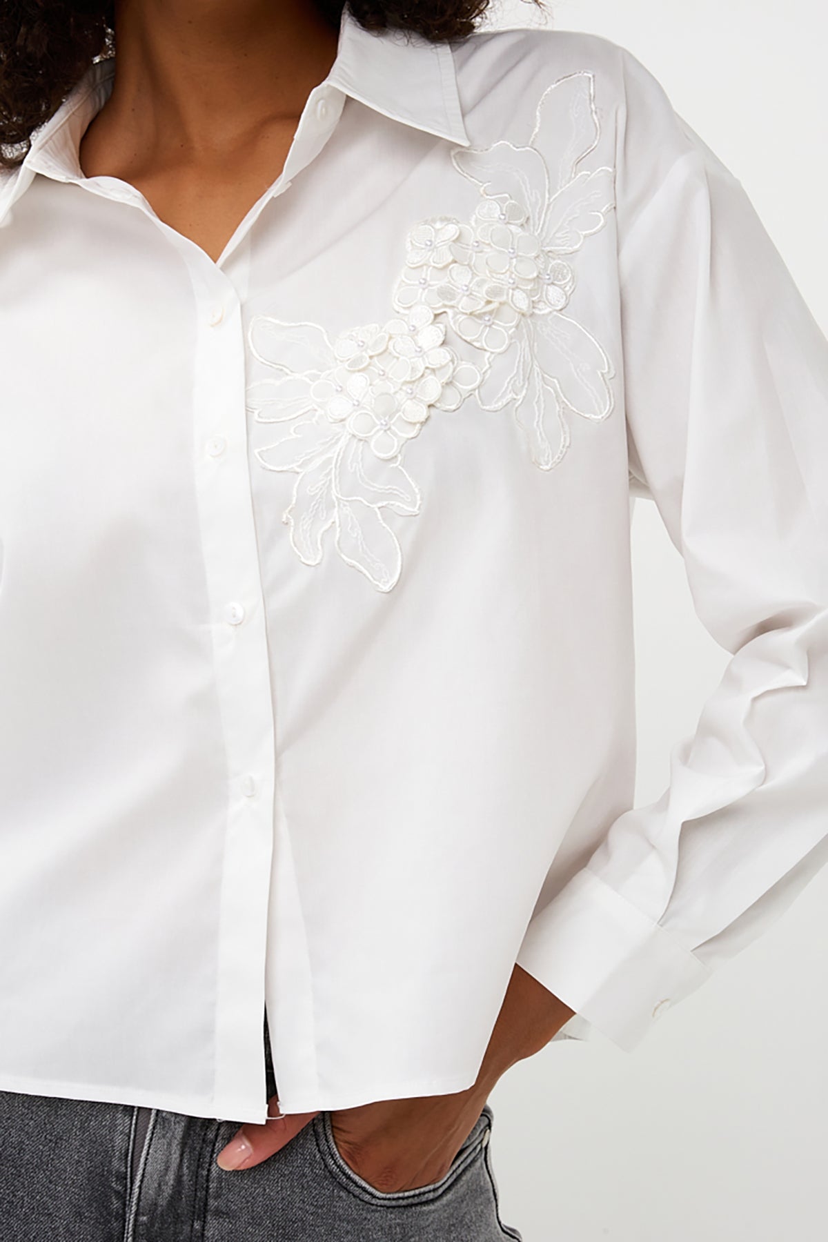 The Blouse Small Flower Patch features delicate lace and floral details for a soft, stylish look that works with any outfit.