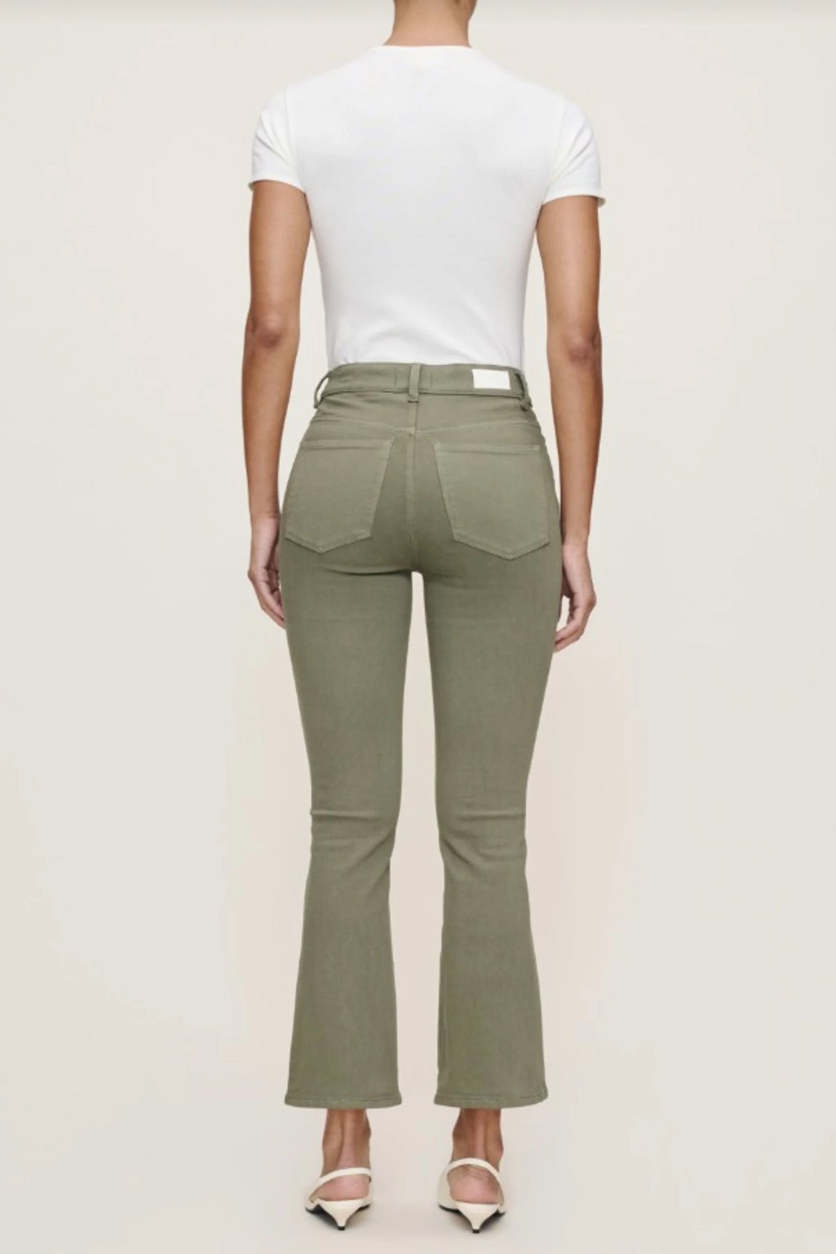 The Bridget boot crop features a high-rise fit with Instasculpt™ technology for a sculpted silhouette. Rendered in warm-toned Fern green denim with silver hardware and tonal stitching.