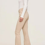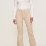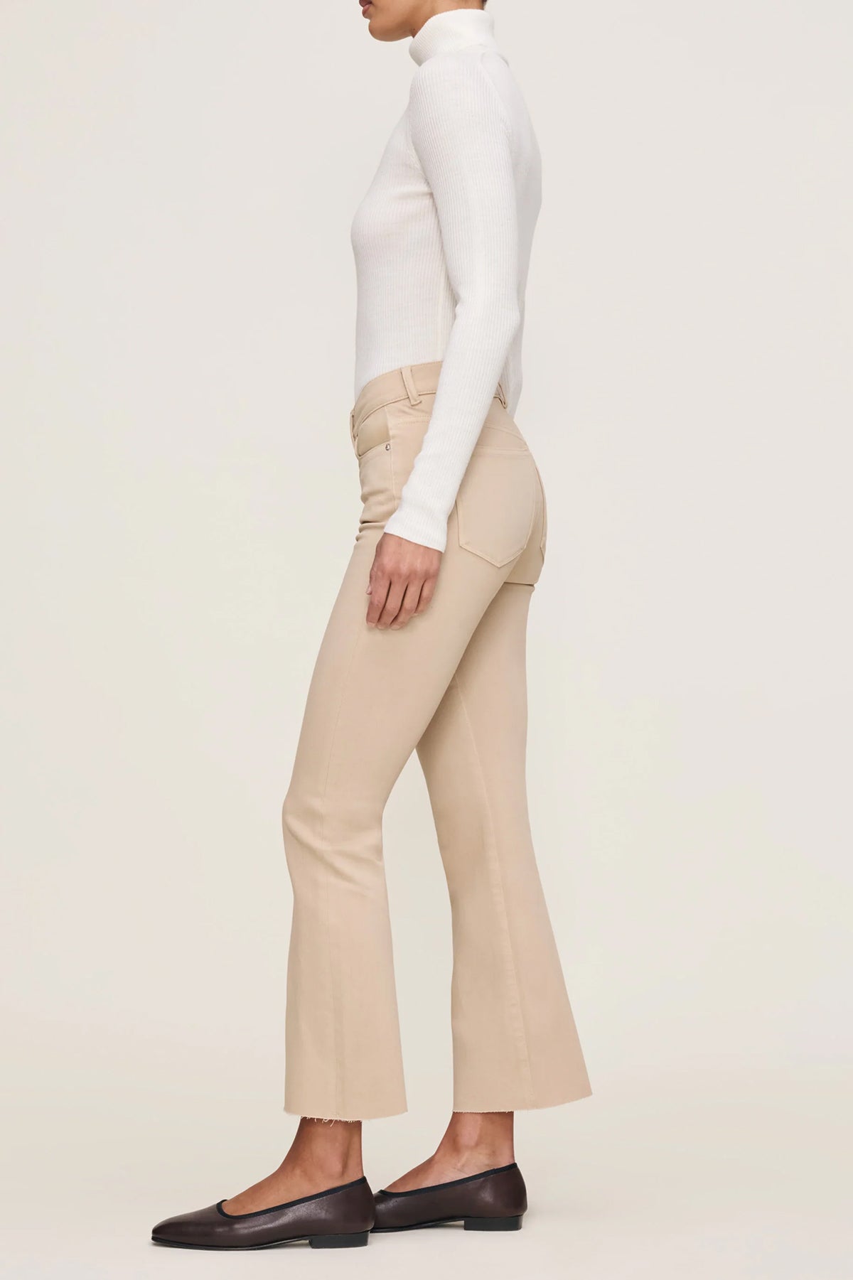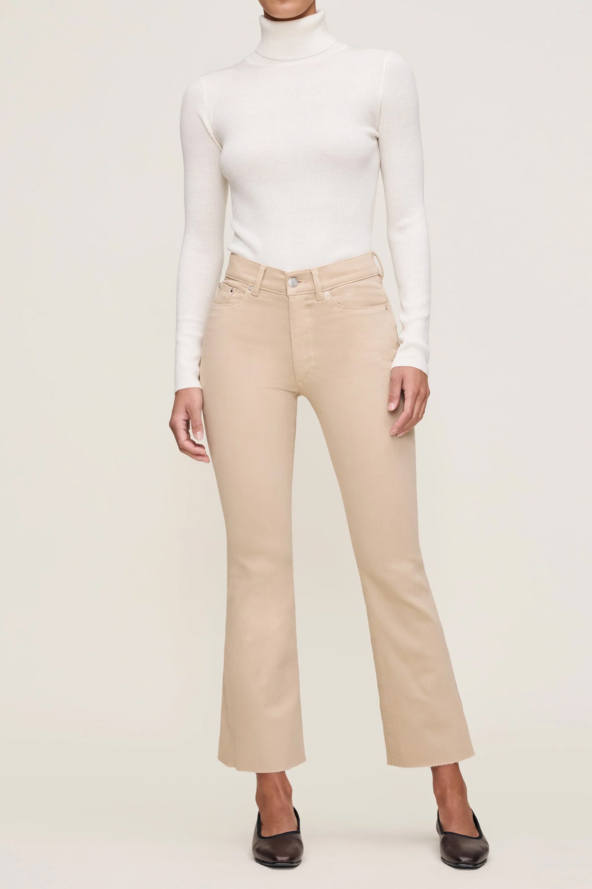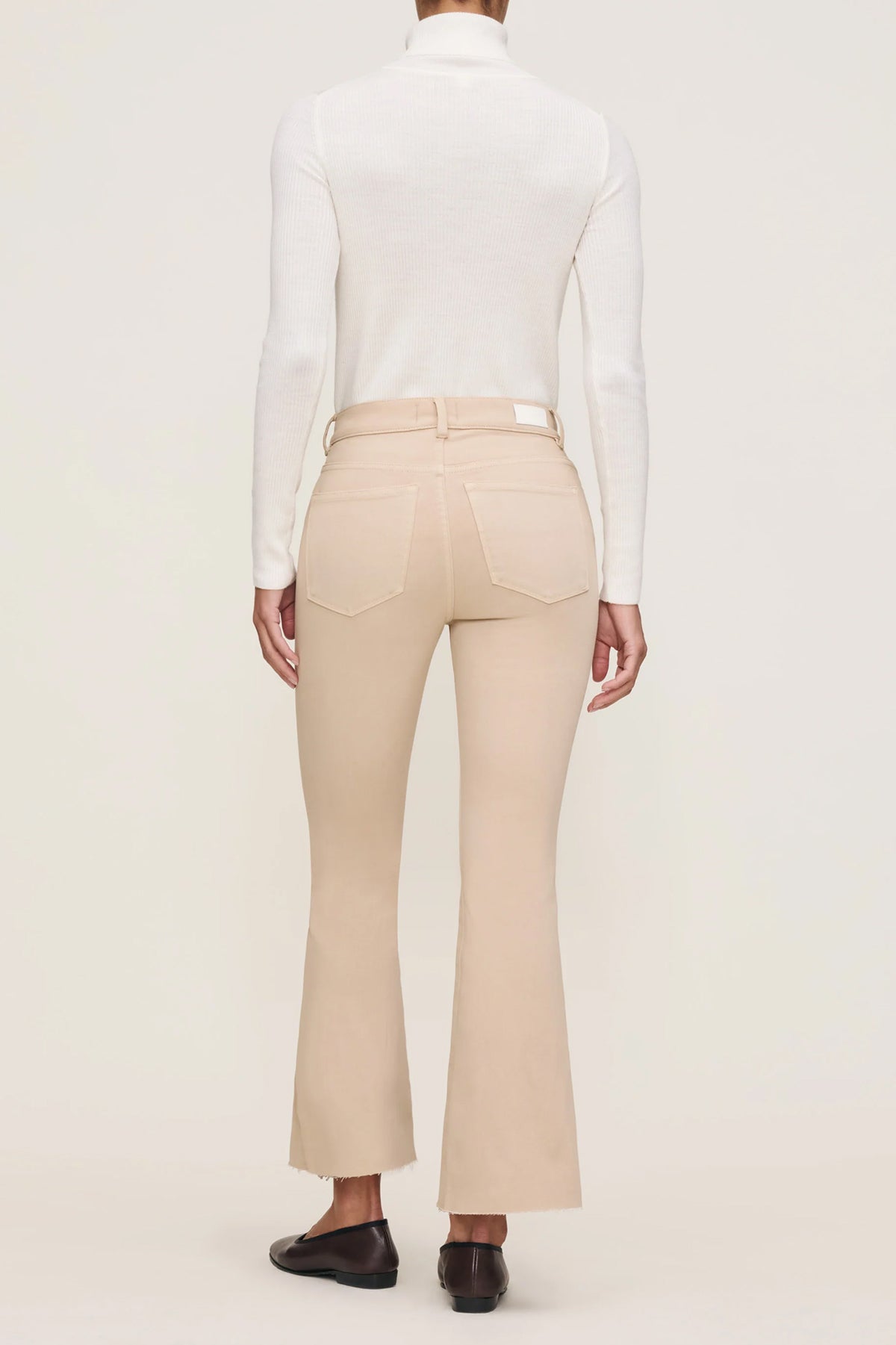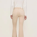 Bridget is a high-rise, cropped boot cut fit that utilizes our Instasculpt™ technology to smooth, sculpt, and conform to your body for the perfect fit. Almond is a light tan hue. It features silver hardware, tonal stitching, a clean hem and an ecru back patch.