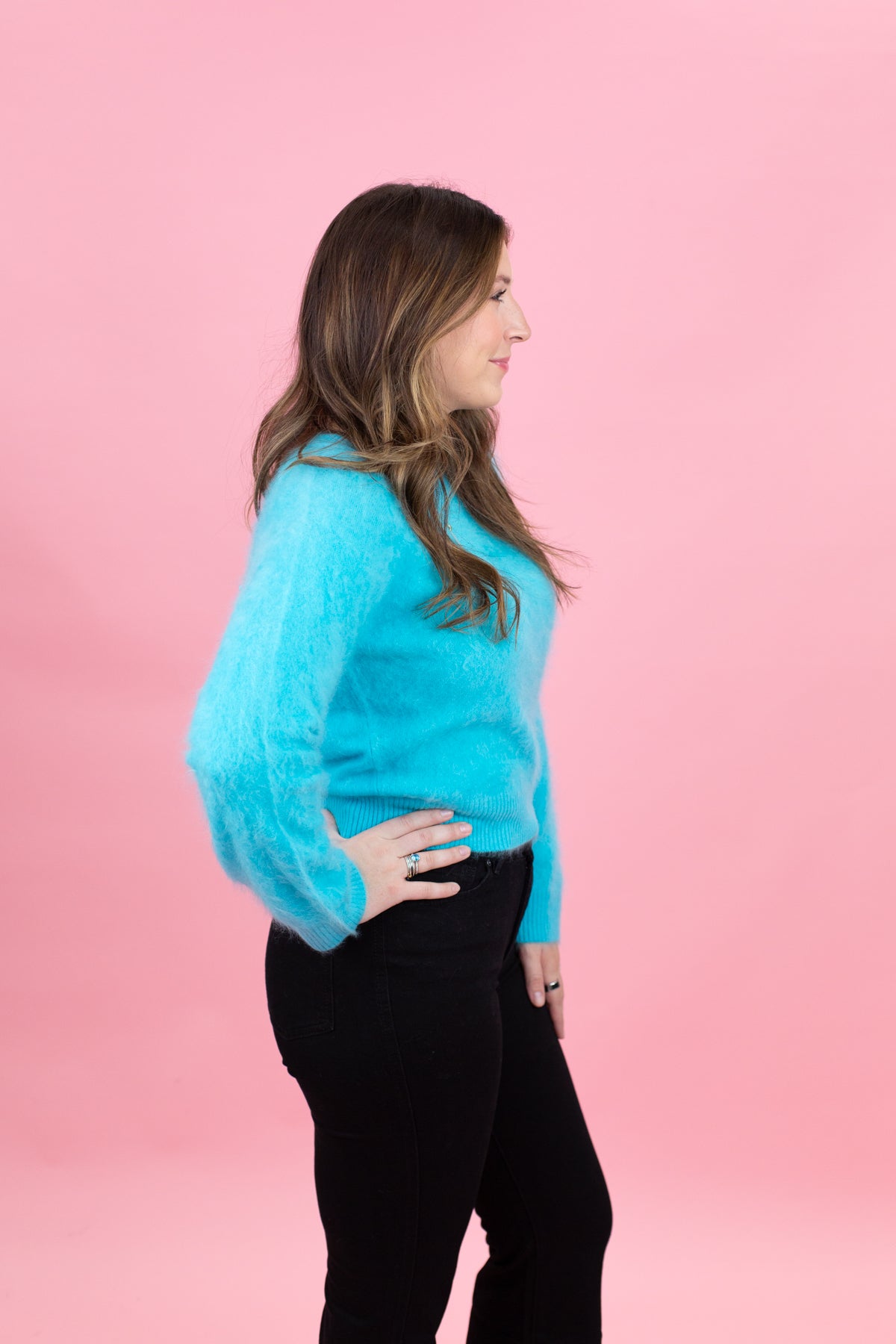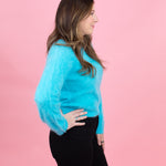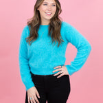 The Brushed Omar Crew is a 100% cashmere crewneck in peacock blue with a soft brushed finish. Luxuriously comfortable and versatile, it layers beautifully or stands alone as a wardrobe staple.