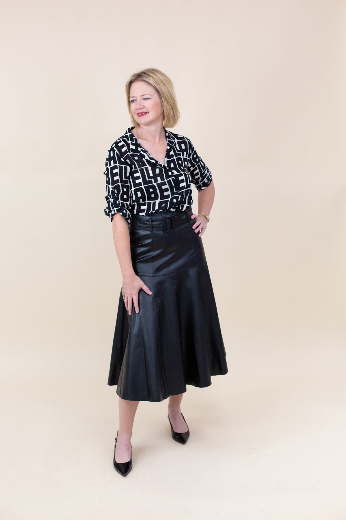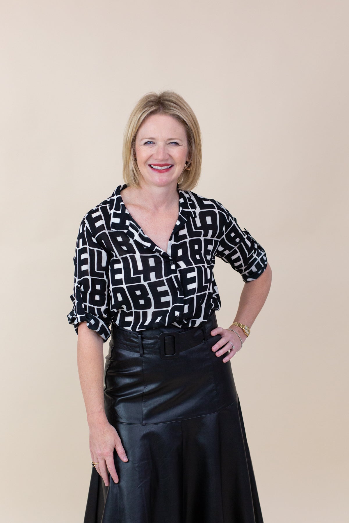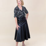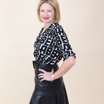 The Capri Button Down in BELLA print combines classic tailoring with a unique pattern, offering a fresh and stylish piece perfect for elevating your everyday wardrobe.
