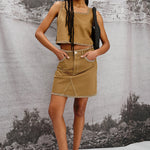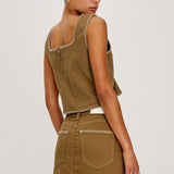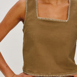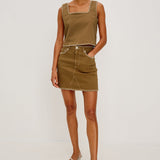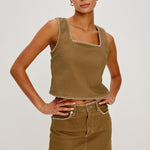 The Carbon cropped tank in safari is made from soft cotton and features an embroidered stitch hem for a subtle, stylish detail. Its cropped fit makes it perfect for layering or wearing on its own for a fresh, modern look.