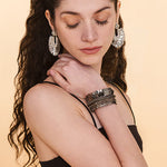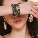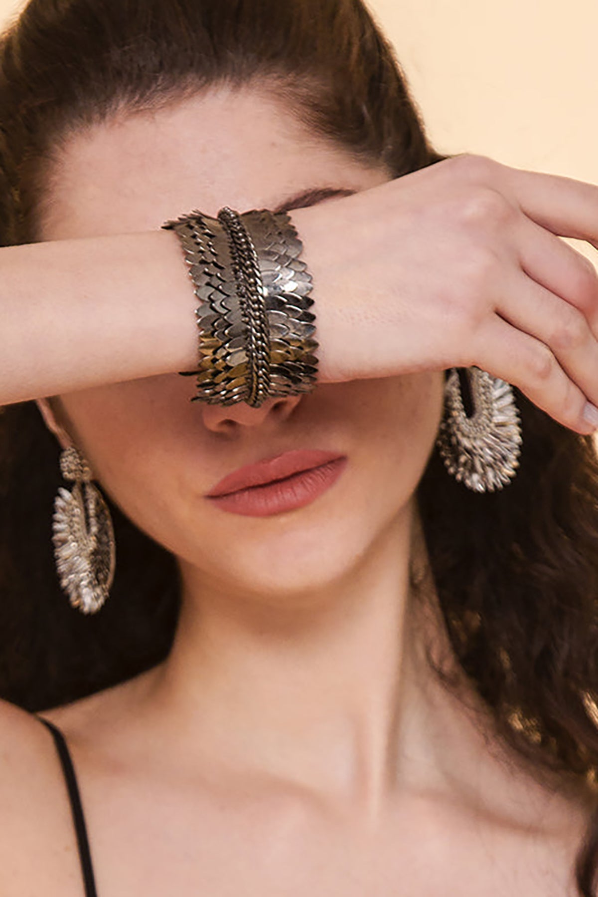 Deepa Gurnani accessories are handcrafted, artisanal pieces that blend intricate beadwork and modern design, adding a touch of luxury to any outfit. Each item is meticulously crafted, showcasing bold textures and vibrant colors for a statement look, every time.