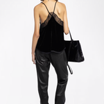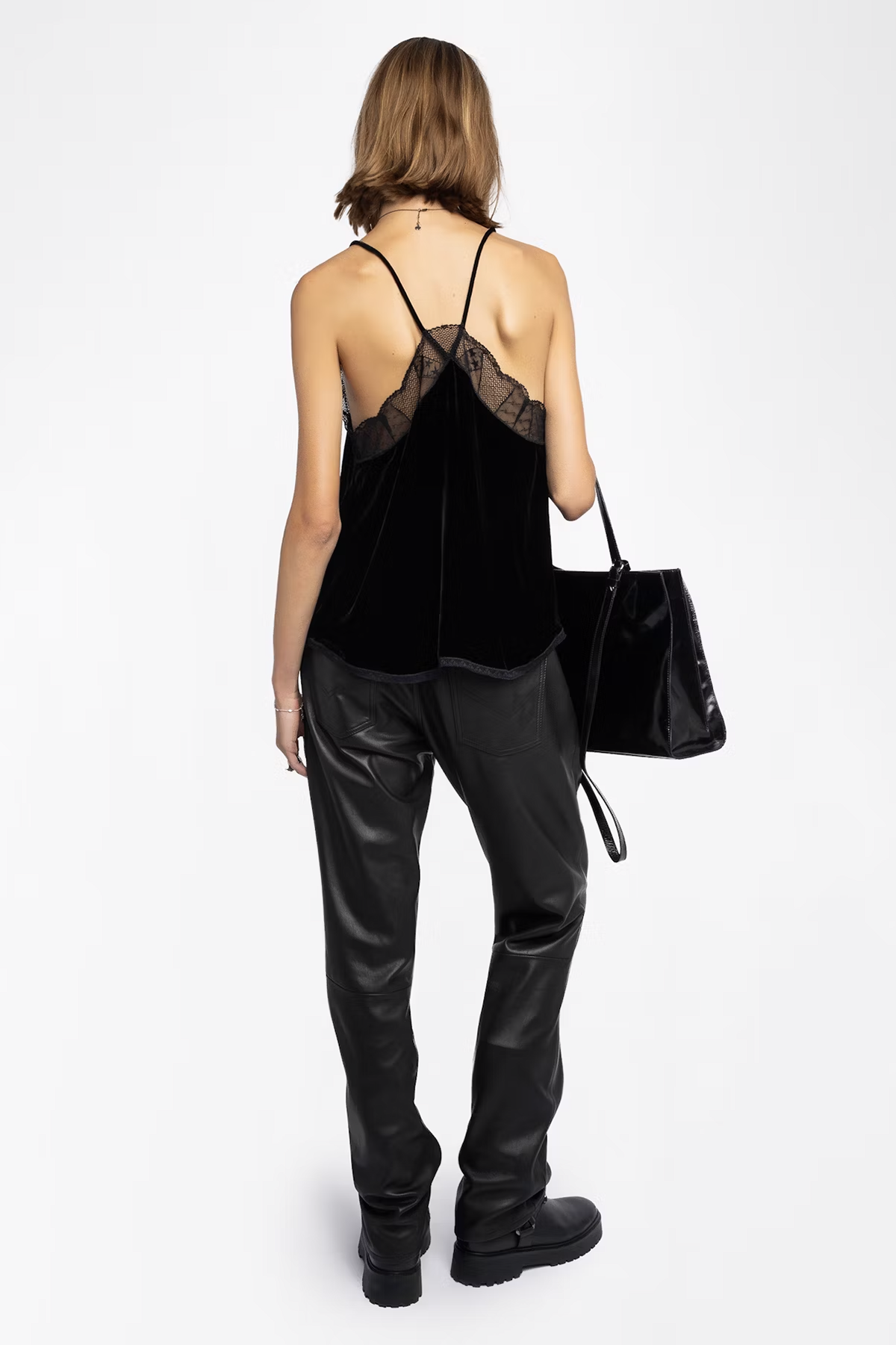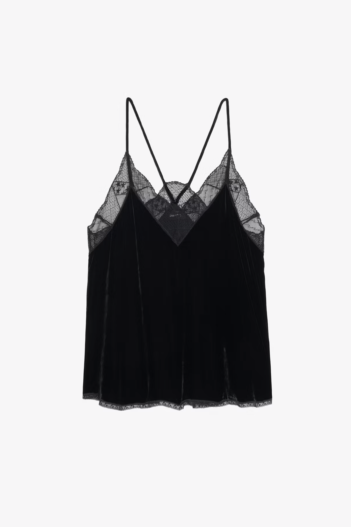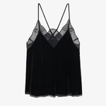 A luxurious velvet and lace racerback tank with elegant textures and a flattering fit. Layer it or wear solo for an effortlessly sophisticated look perfect for any occasion.