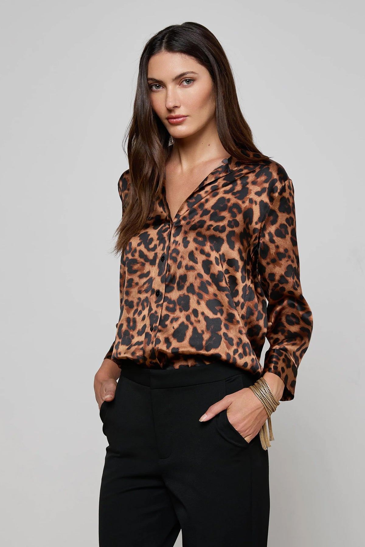 The Dani 3/4 Sleeve Silk Blouse features soft, luxurious silk and a flattering fit. Its versatile sleeves add a stylish touch, perfect for both day and night looks.