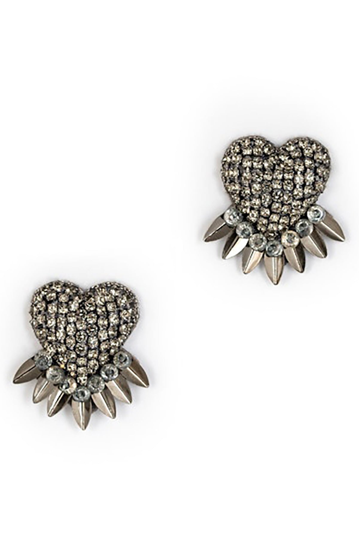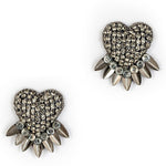 These heart shaped studs feature gunmetal colored crystals for a subtle yet stunning sparkle.