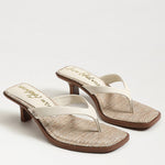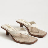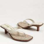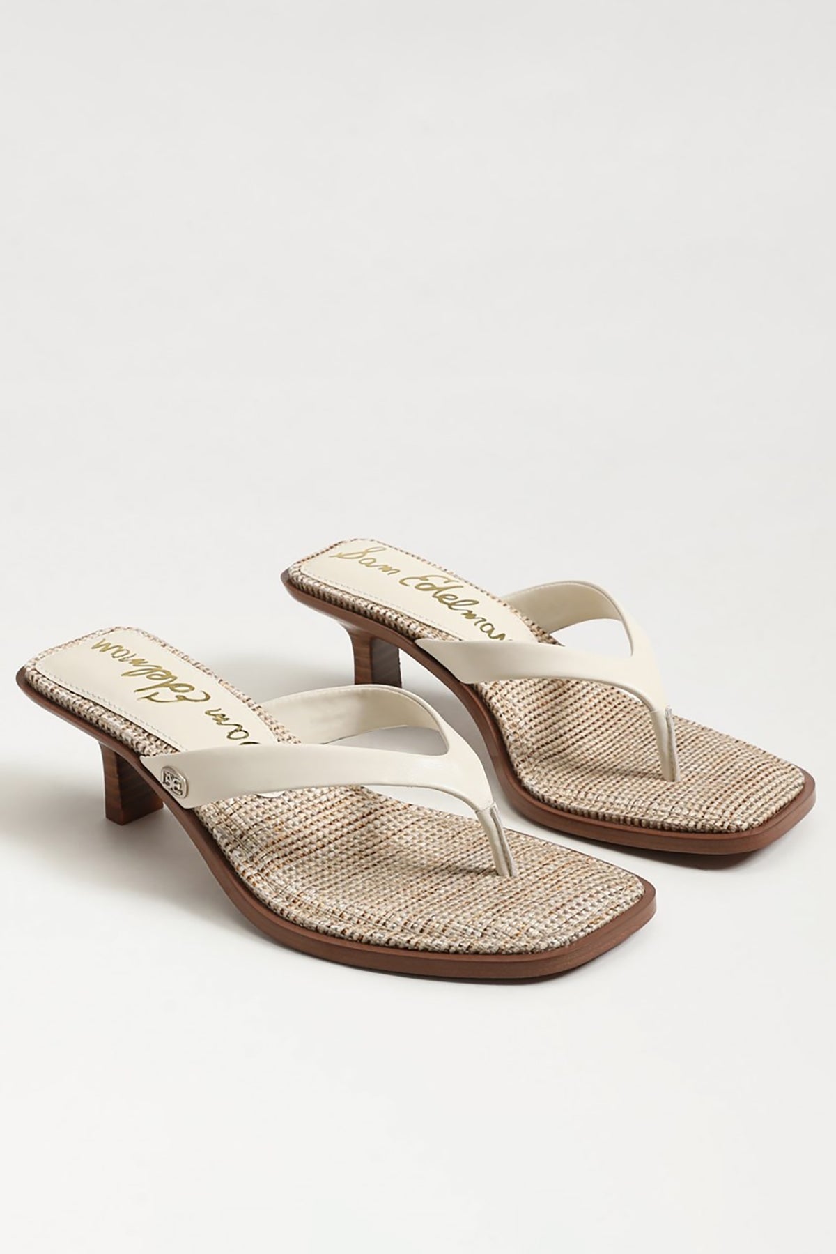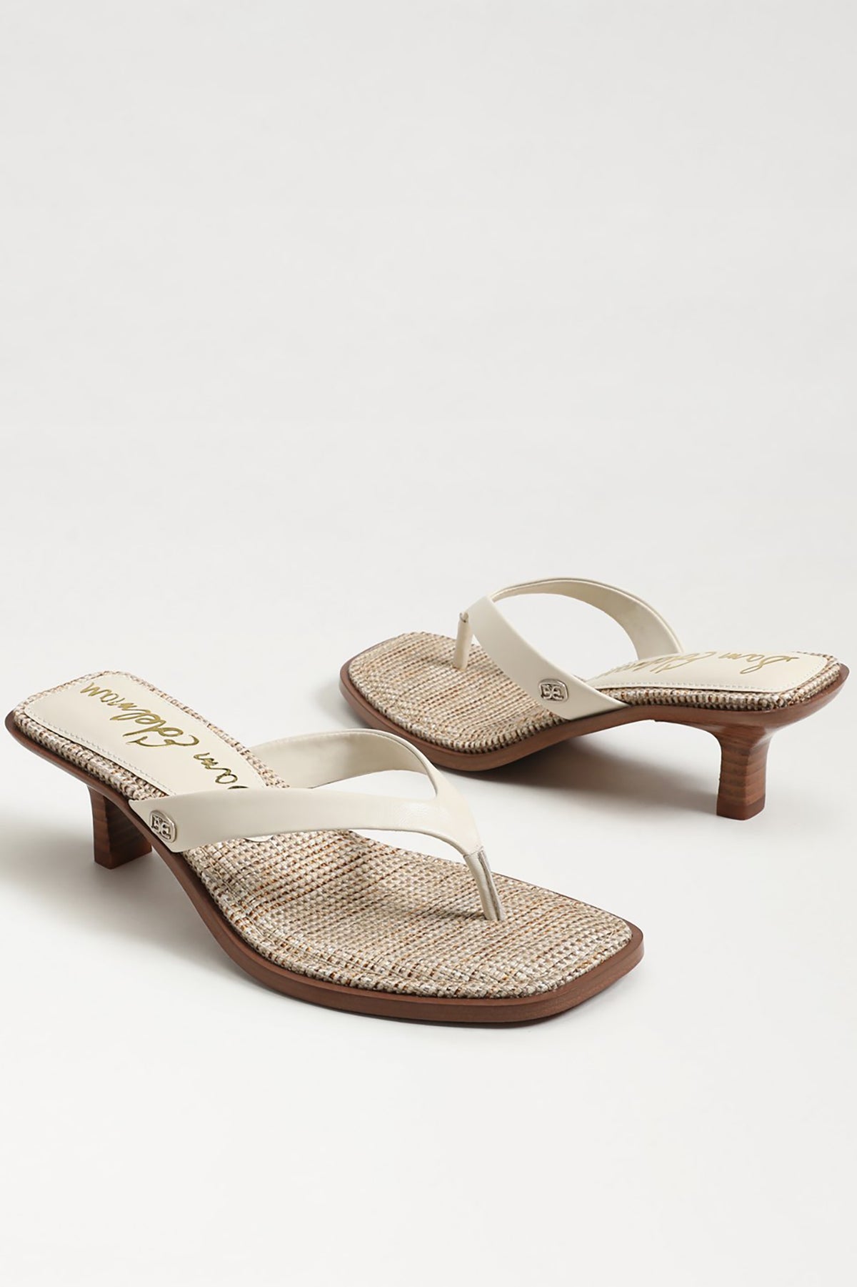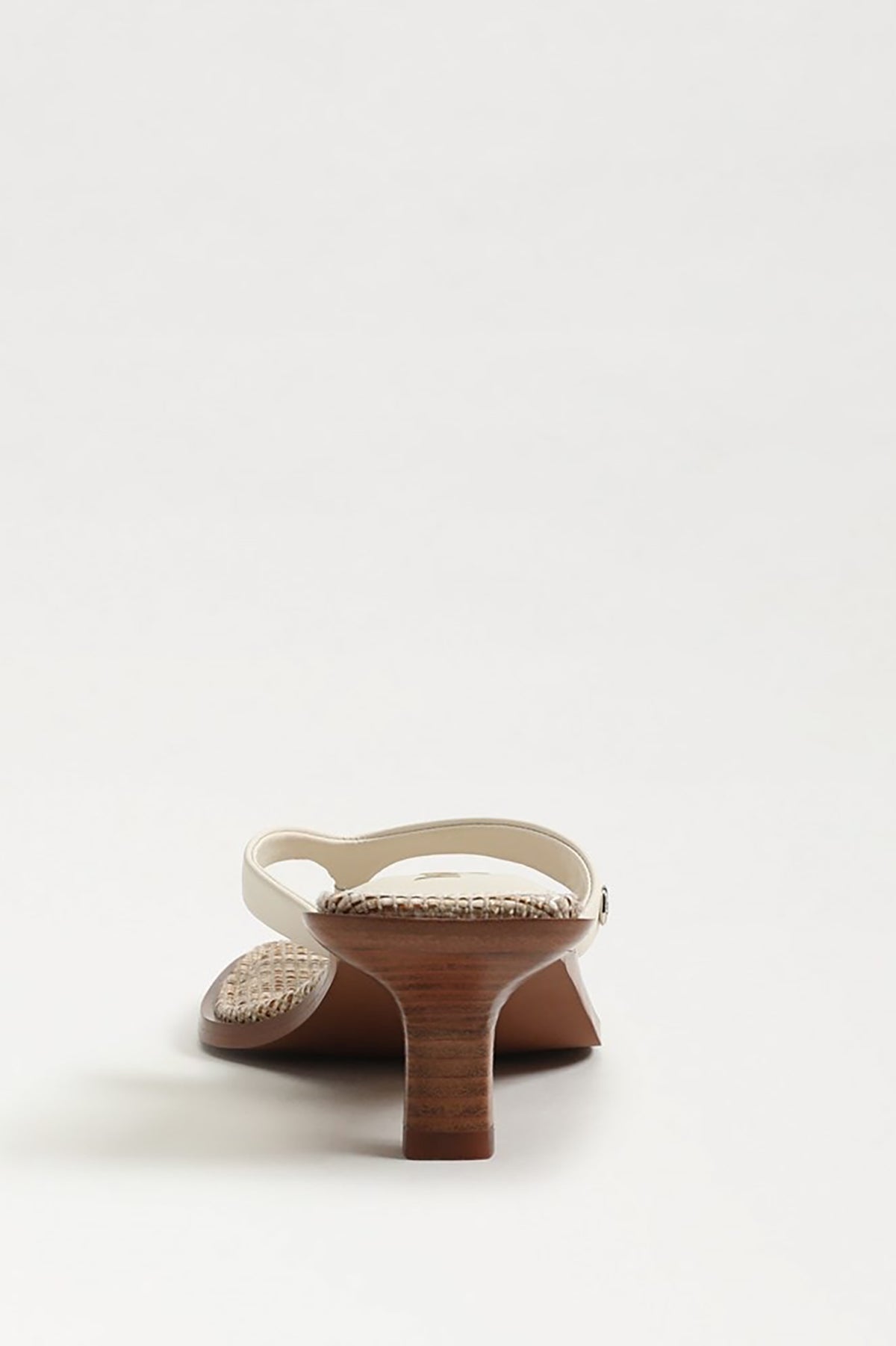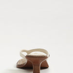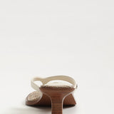 The Dollie offers a stylish and summery look with its raffia and ivory flip flop style kitten heels. Enjoy the comfort and elegance of this unique design, perfect for any warm-weather occasion.