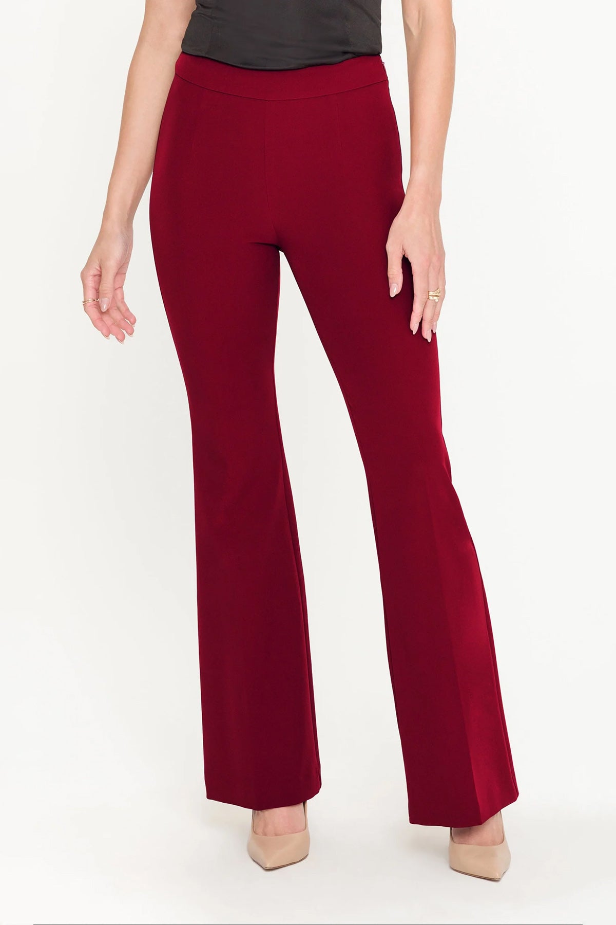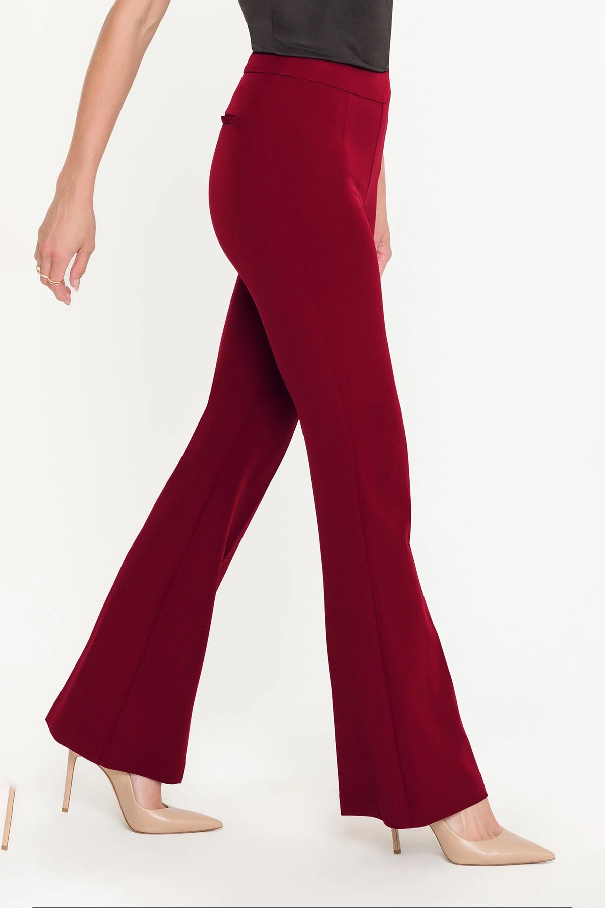 Crafted from refined crepe fabric, these pants offer a fluid drape that flatters the silhouette while maintaining a polished appearance. The sophisticated hue makes a bold statement, whether styled for professional settings or evening occasions. Versatile and effortlessly chic, these pants are a wardrobe investment that pairs beautifully with both understated basics and statement pieces!