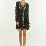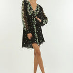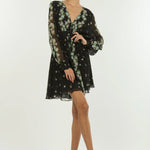 The Emerson Dress combines timeless style with comfort. Made from 100% silk chiffon, this piece features a flattering V-neckline, cinched waist, and flowing sleeves that move beautifully. The black floral print brings vintage-inspired elegance to any occasion, from day to night. Fully lined for a polished finish.