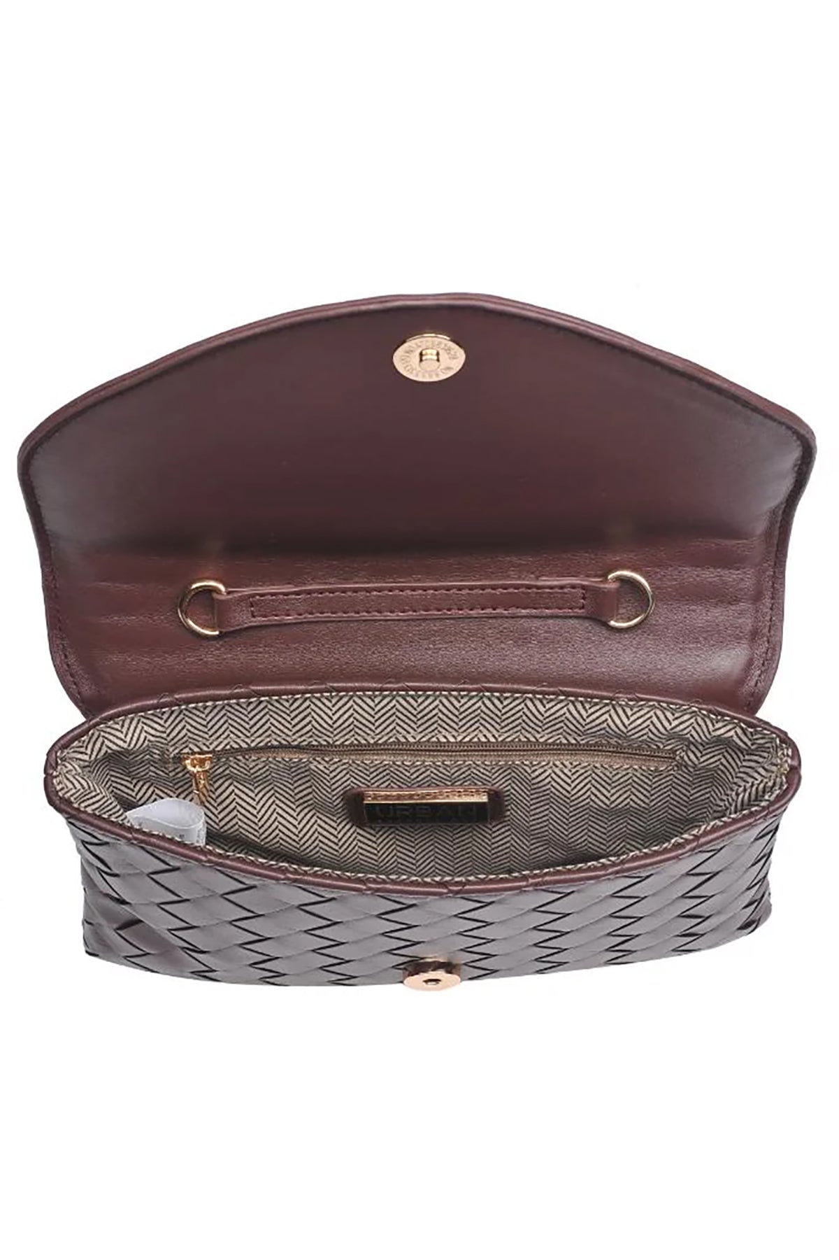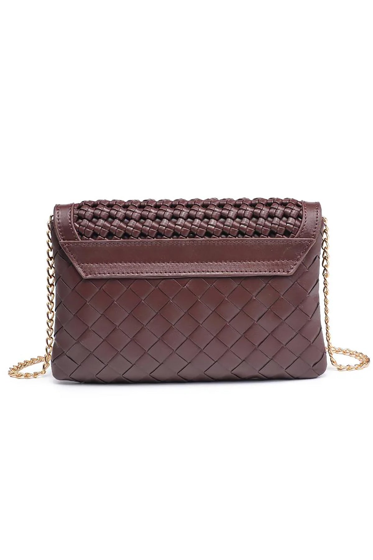 The Emma Woven Crossbody blends rich brown tones with intricate weaving for a chic, textured look. Its lightweight design and adjustable strap make it the perfect stylish companion for hands-free convenience on the go.