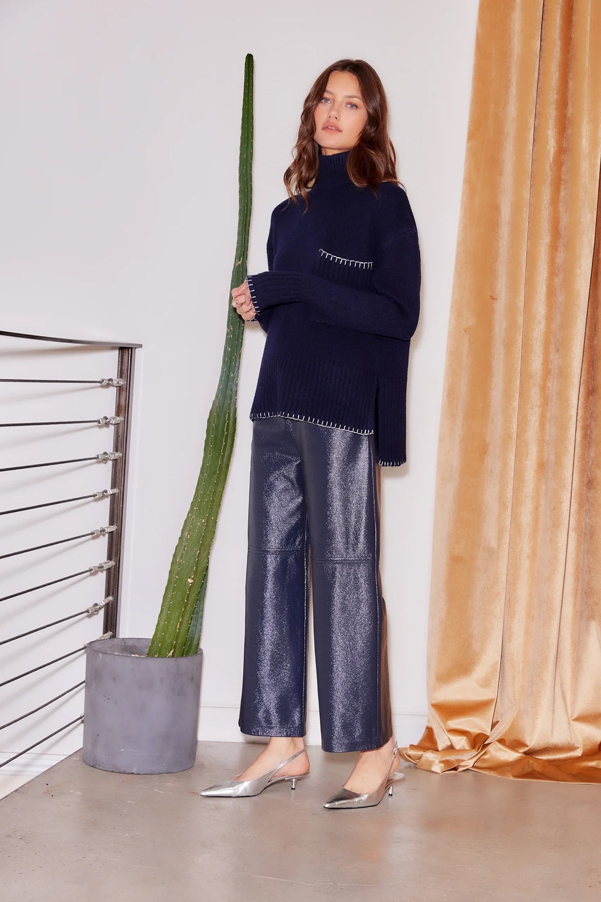 Sleek faux patent leather pants with a glossy finish that makes a bold fashion statement. The durable synthetic material delivers luxury style at an accessible price point. Versatile enough for evening events or edgy everyday wear.