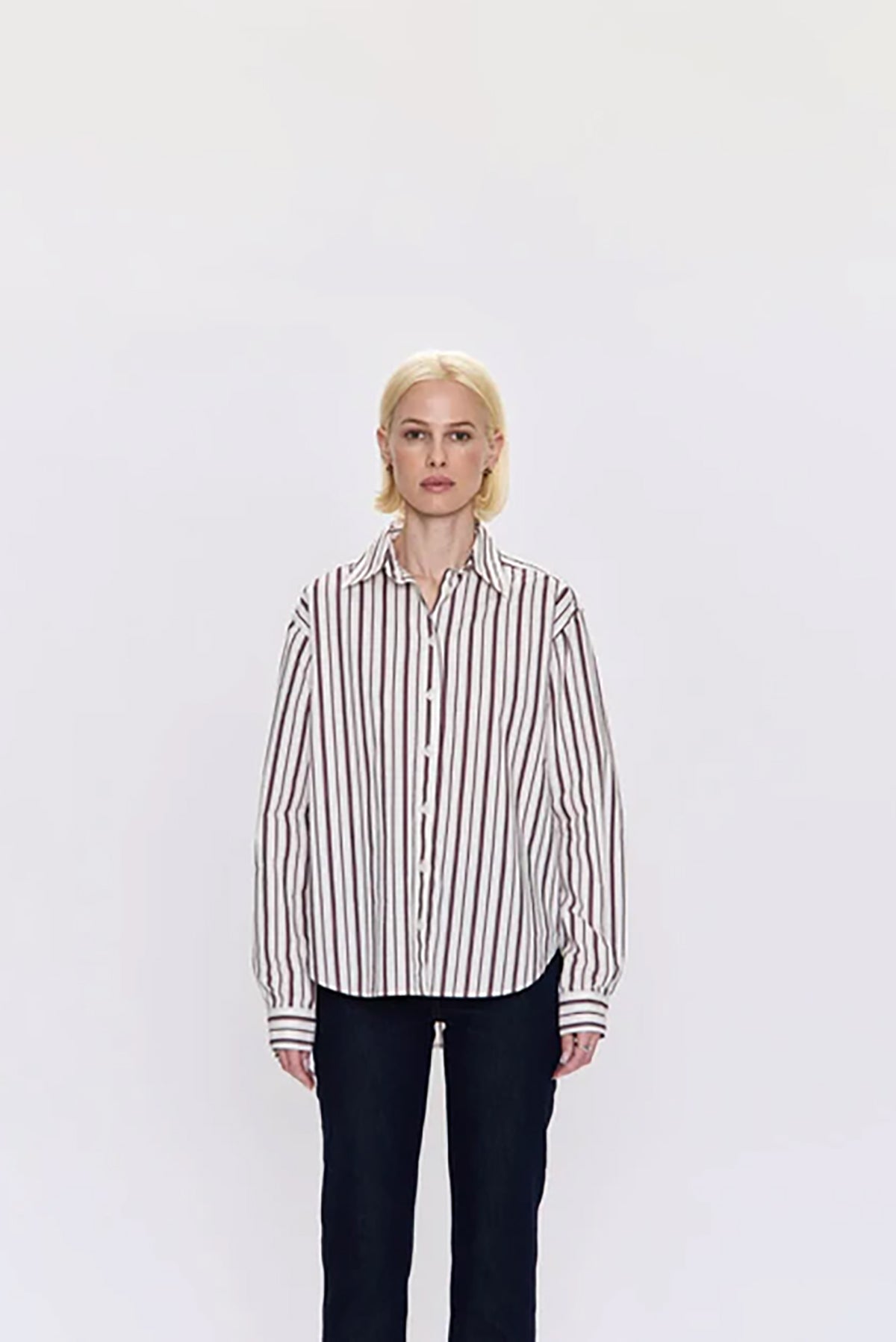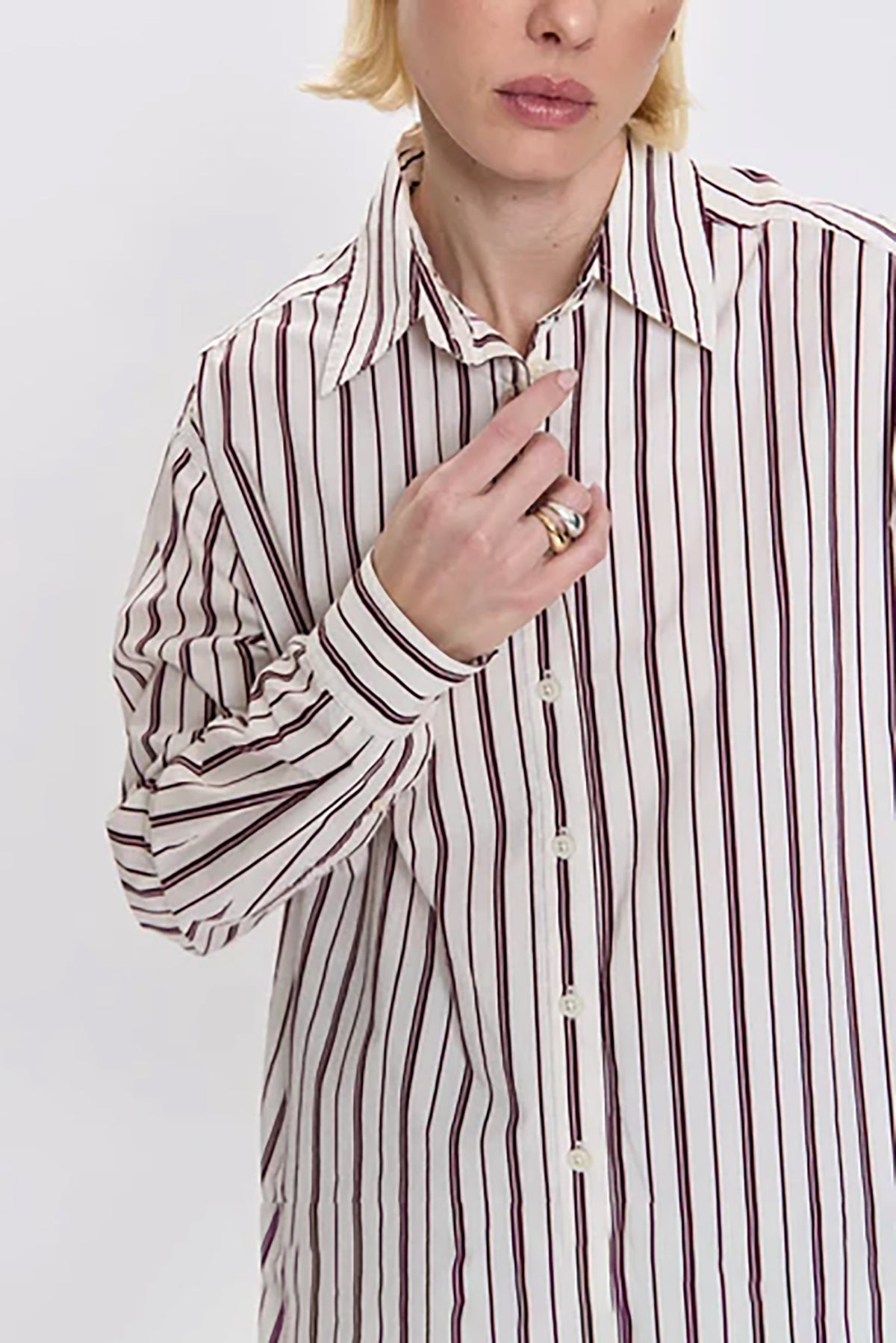 The Finlay shirt has claret stripes and a classic button-down style, perfect for casual or polished looks.