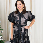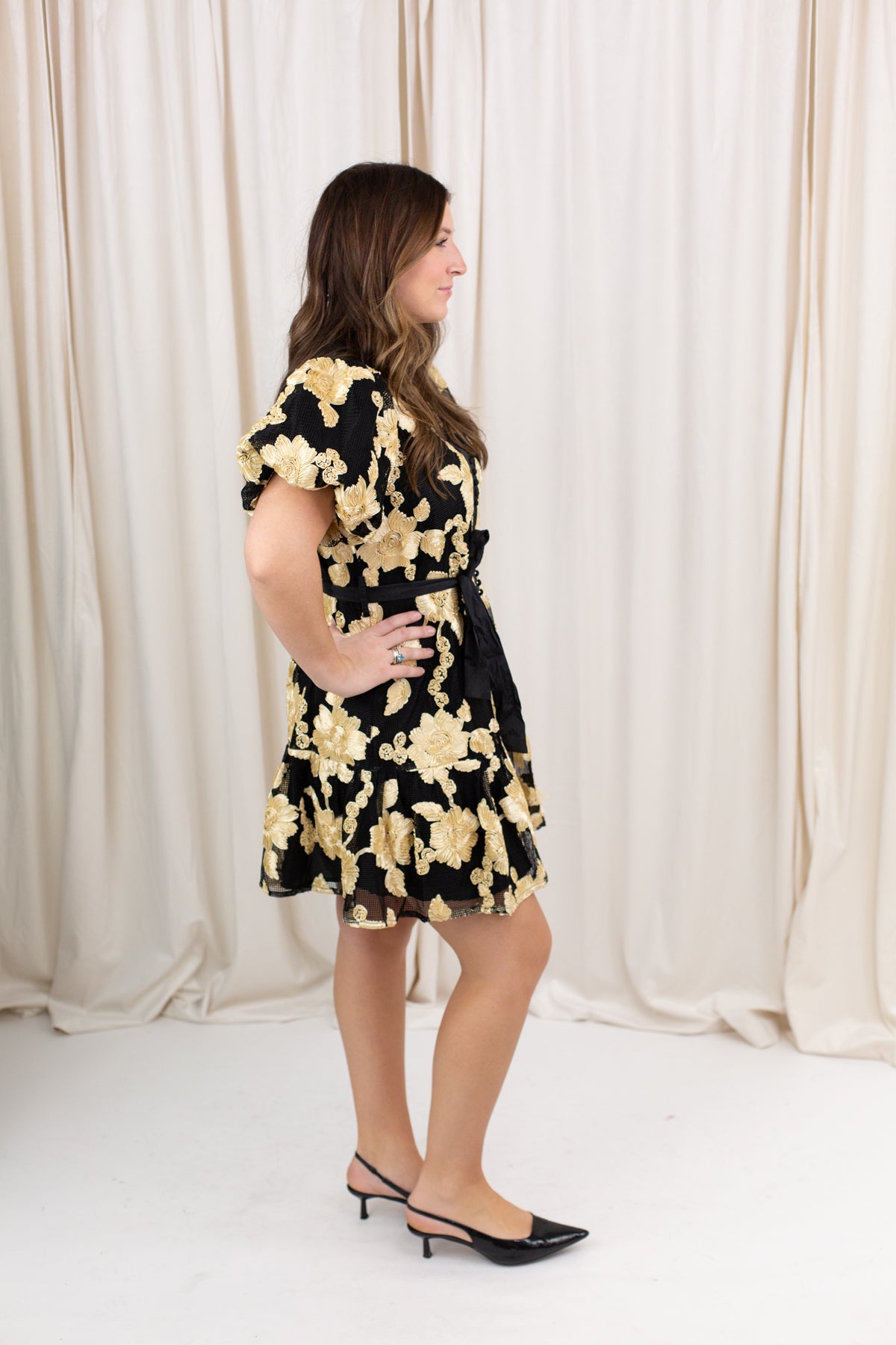 Delicate floral lace dress with an adjustable waist tie for a customizable fit. Perfect for special occasions or everyday elegance, this versatile piece works for both casual and dressy settings.