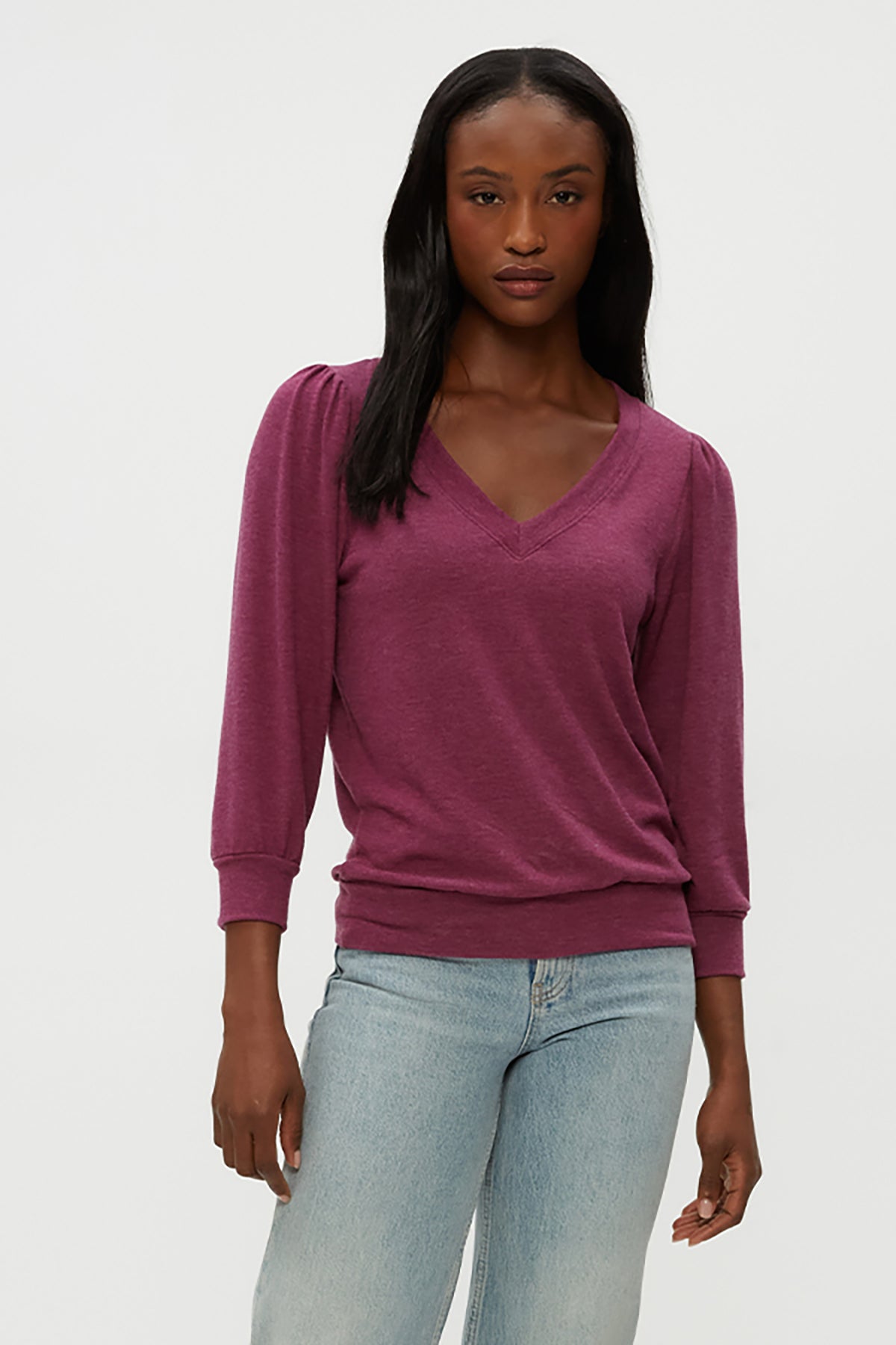 A versatile V-neck sweater with three-quarter sleeves that transitions seamlessly from work to weekend. The flattering neckline and comfortable fit make it an easy go-to piece for any occasion.