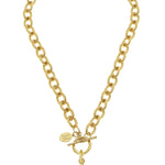 The Gold Medium Oval Concho on Toggle Chain Necklace features a bold oval concho detail paired with a sturdy toggle chain, adding a chic, fashionable edge to any look.