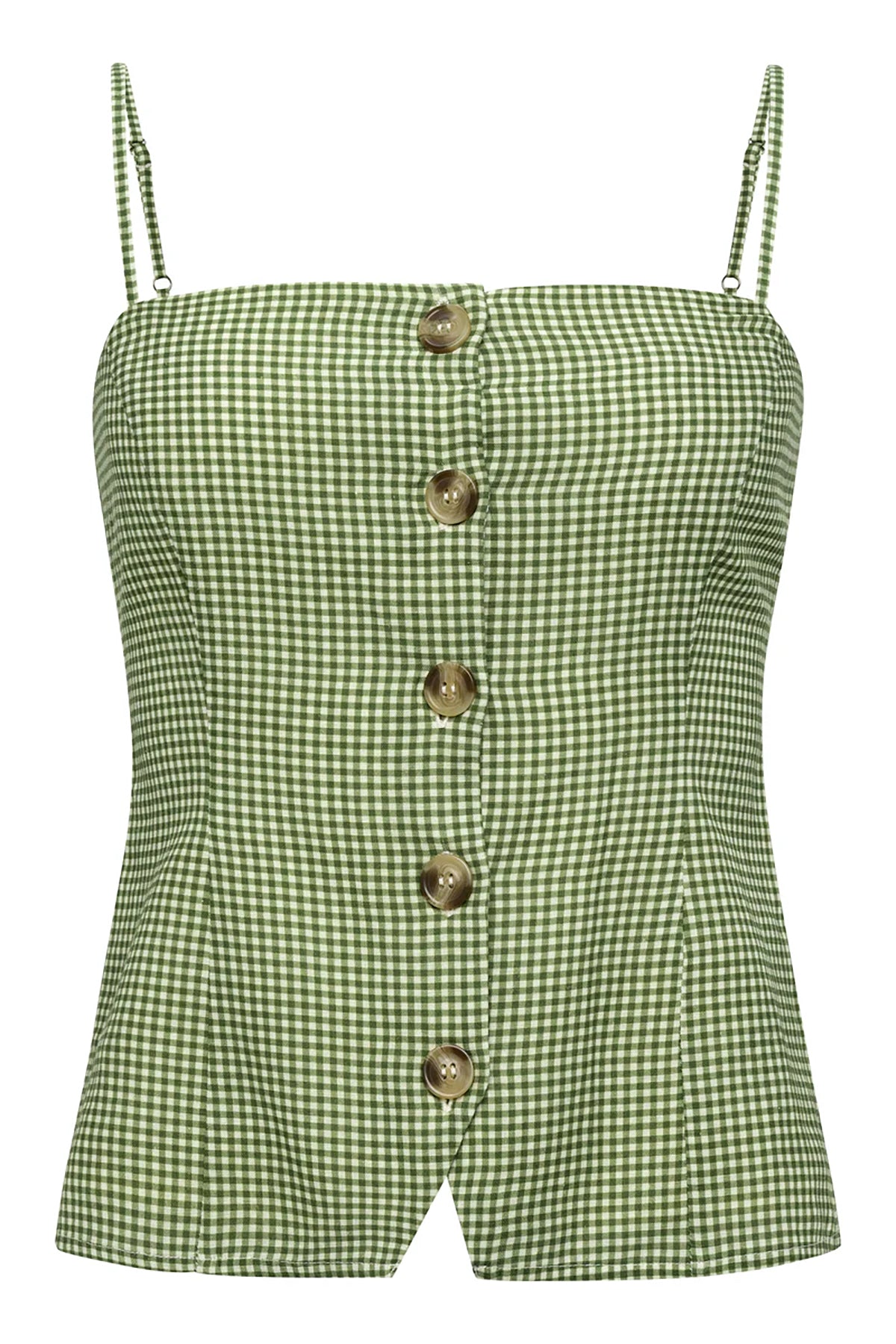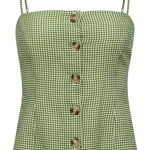 Classic button-down tank in hunter plaid green. Versatile enough to layer or wear alone, this preppy essential pairs with everything from denim to dress pants.