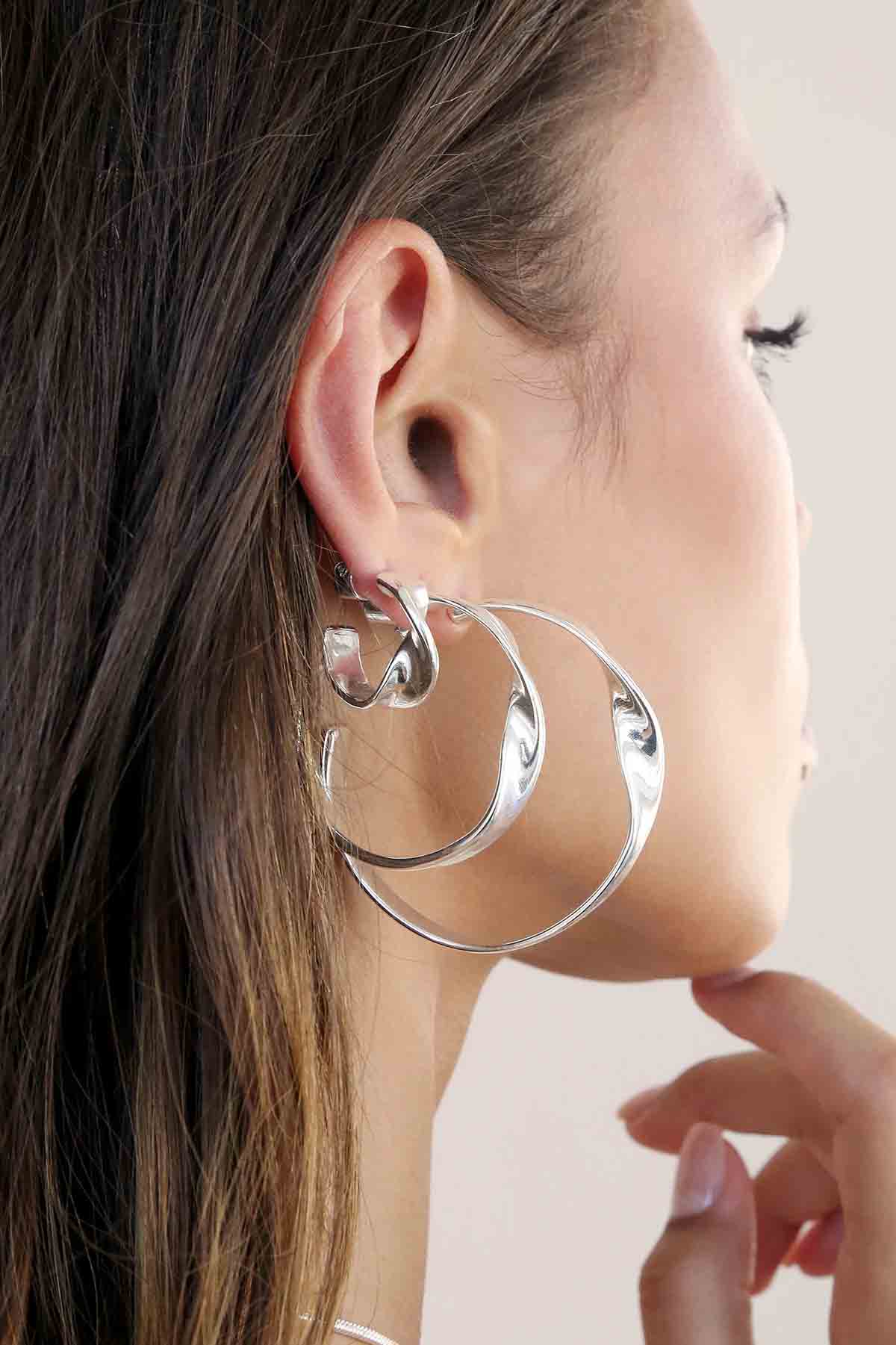 The Heirloom Twist Large Hoops offer a stylish, twisted design that adds a modern touch to any look. Lightweight and eye-catching, they make a bold yet elegant statement.