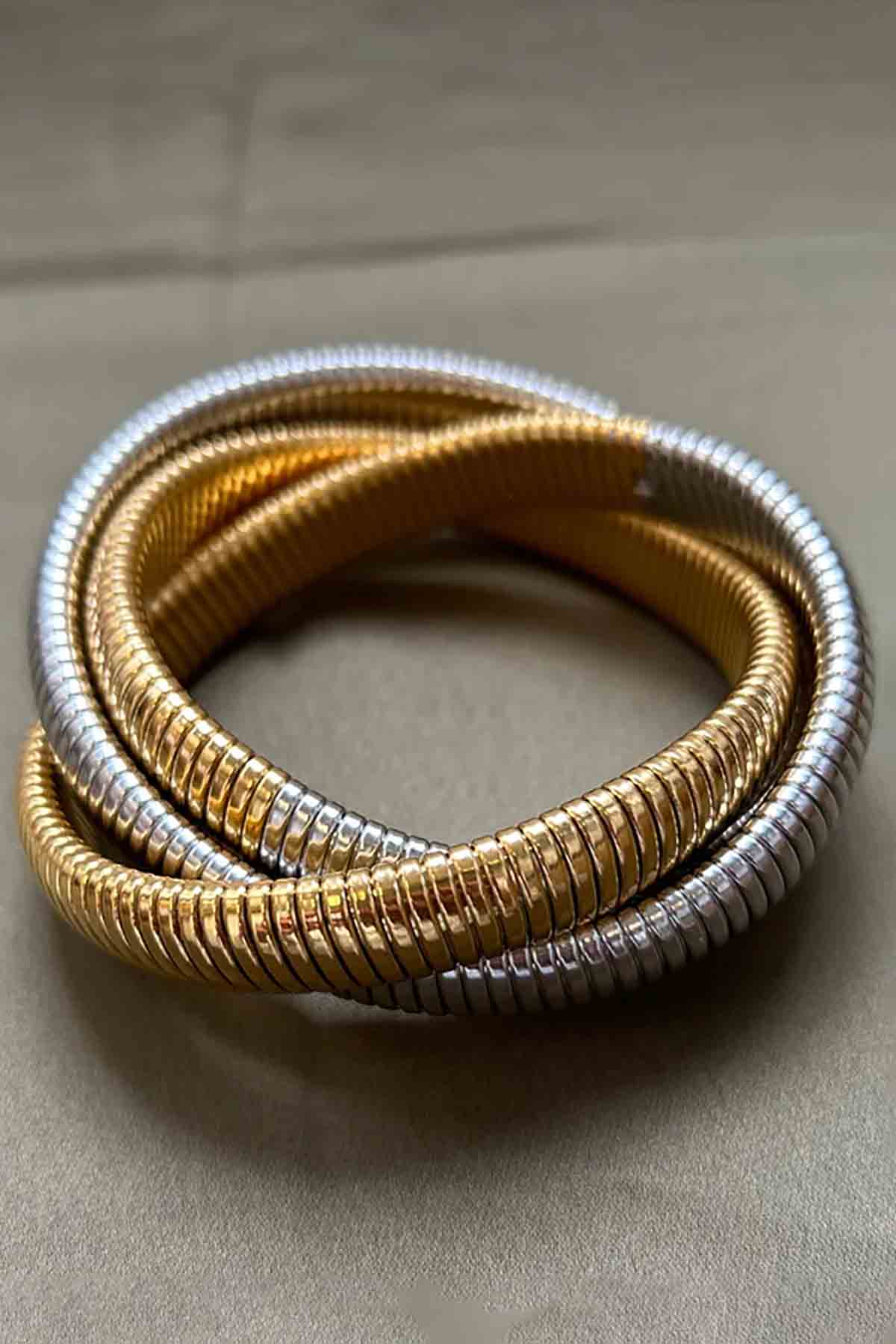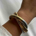The Infinity Multi Layered Bracelet in Two-Tone adds stylish contrast and depth to any outfit. Its versatile design is perfect for everyday wear or special events. Wear it solo or stack for a trendy look.