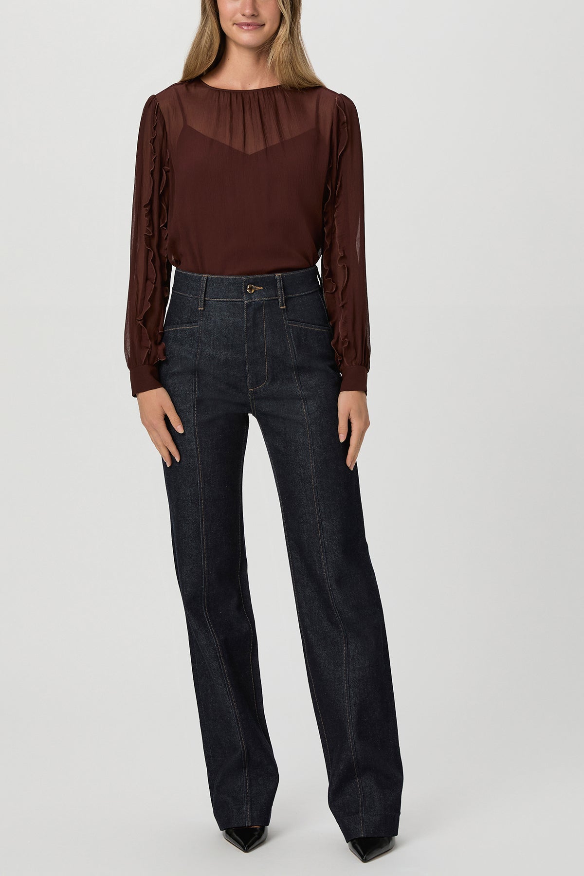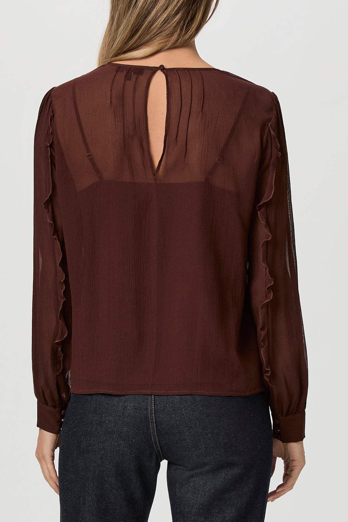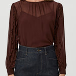 The Isabel Blouse features a sheer high neck and long sleeves, creating a delicate and elegant look that's perfect for adding sophistication to any outfit.