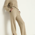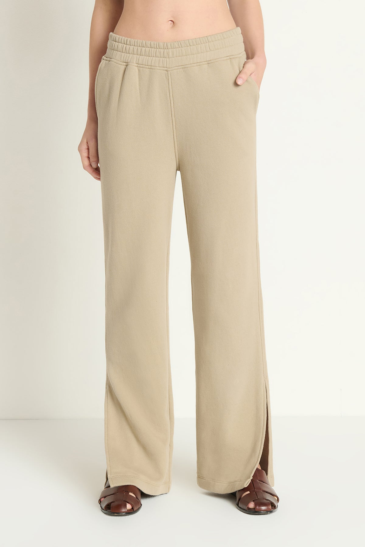 The Jake Sweatpants are vintage khaki with side slits for comfort and style.