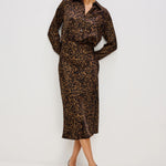 Make a statement with the Jazlyn blouse, featuring a bold leopard print on silky fabric. This versatile button-down works dressed up or down, perfect for adding edge to any look.