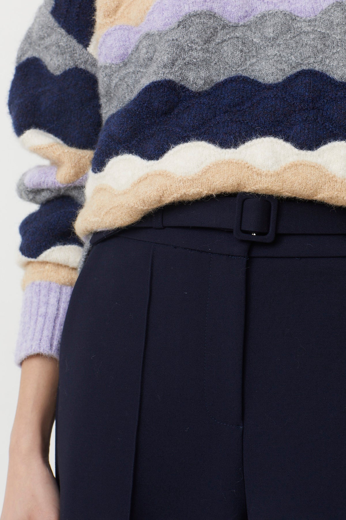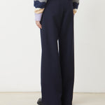 The Jicky Pant features wide legs and a tailored fit in dark navy blue, blending comfort with style for any occasion.