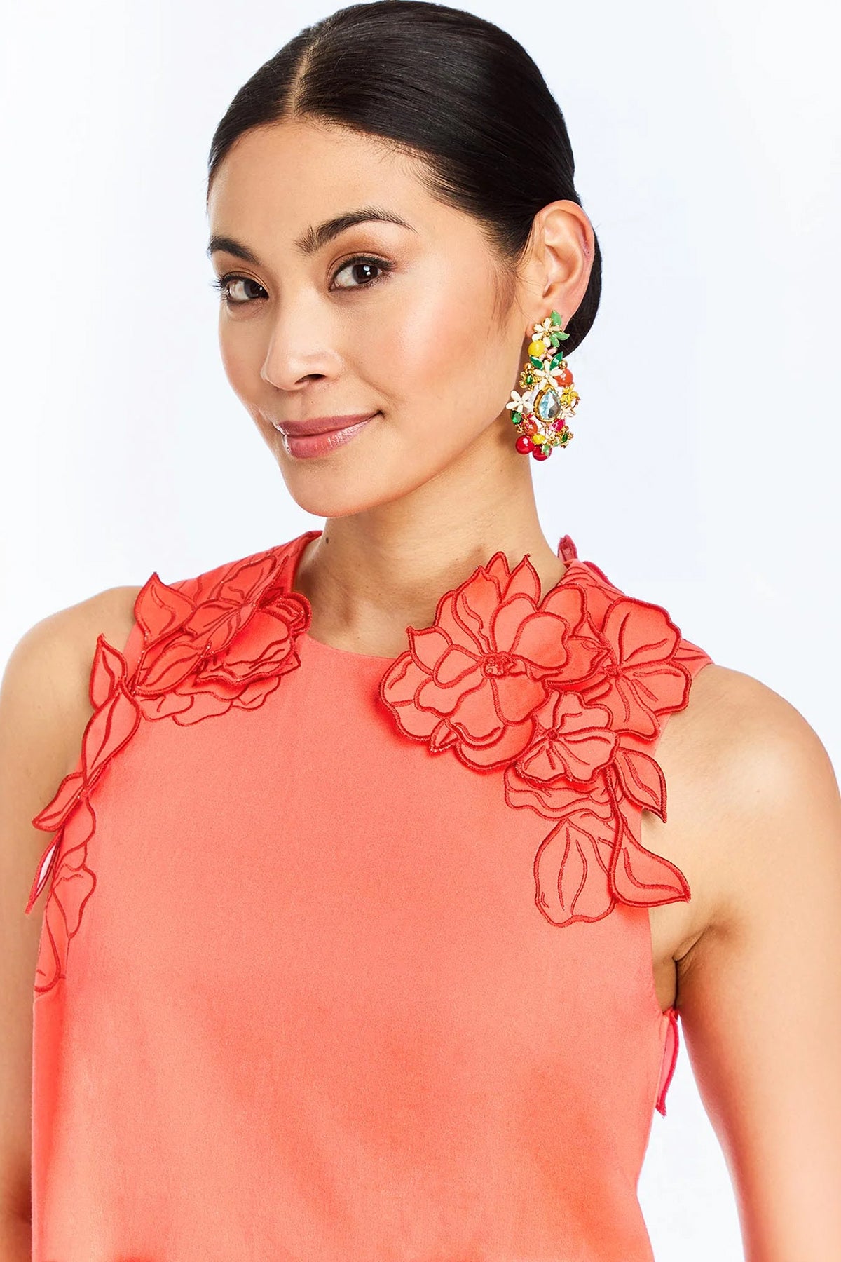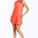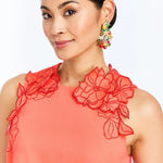 This sleeveless shift silhouette features delicate floral embroidery appliqué along the crew neckline and armholes, creating a refined scalloped edge that adds texture and dimension. A concealed center-back zipper and practical side-seam pockets keep the look streamlined, while the fully lined construction ensures comfort and confidence!