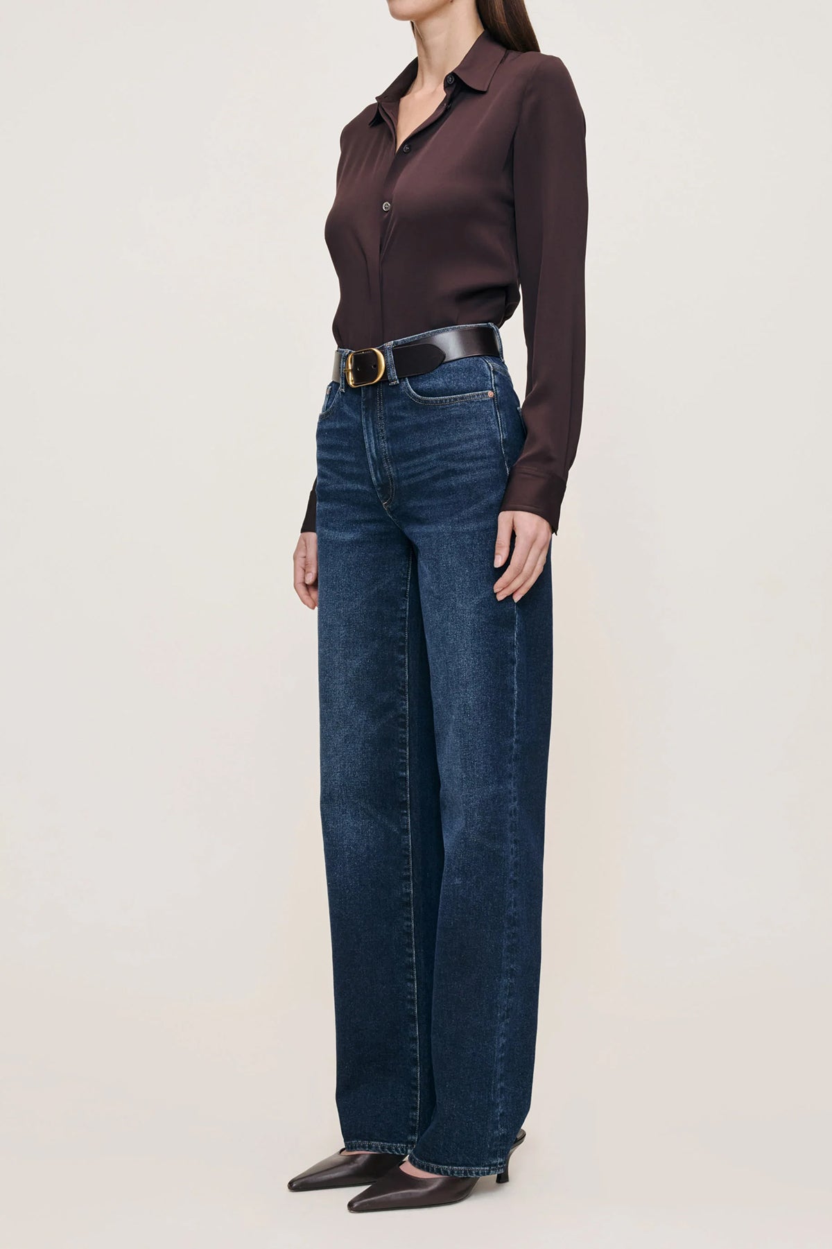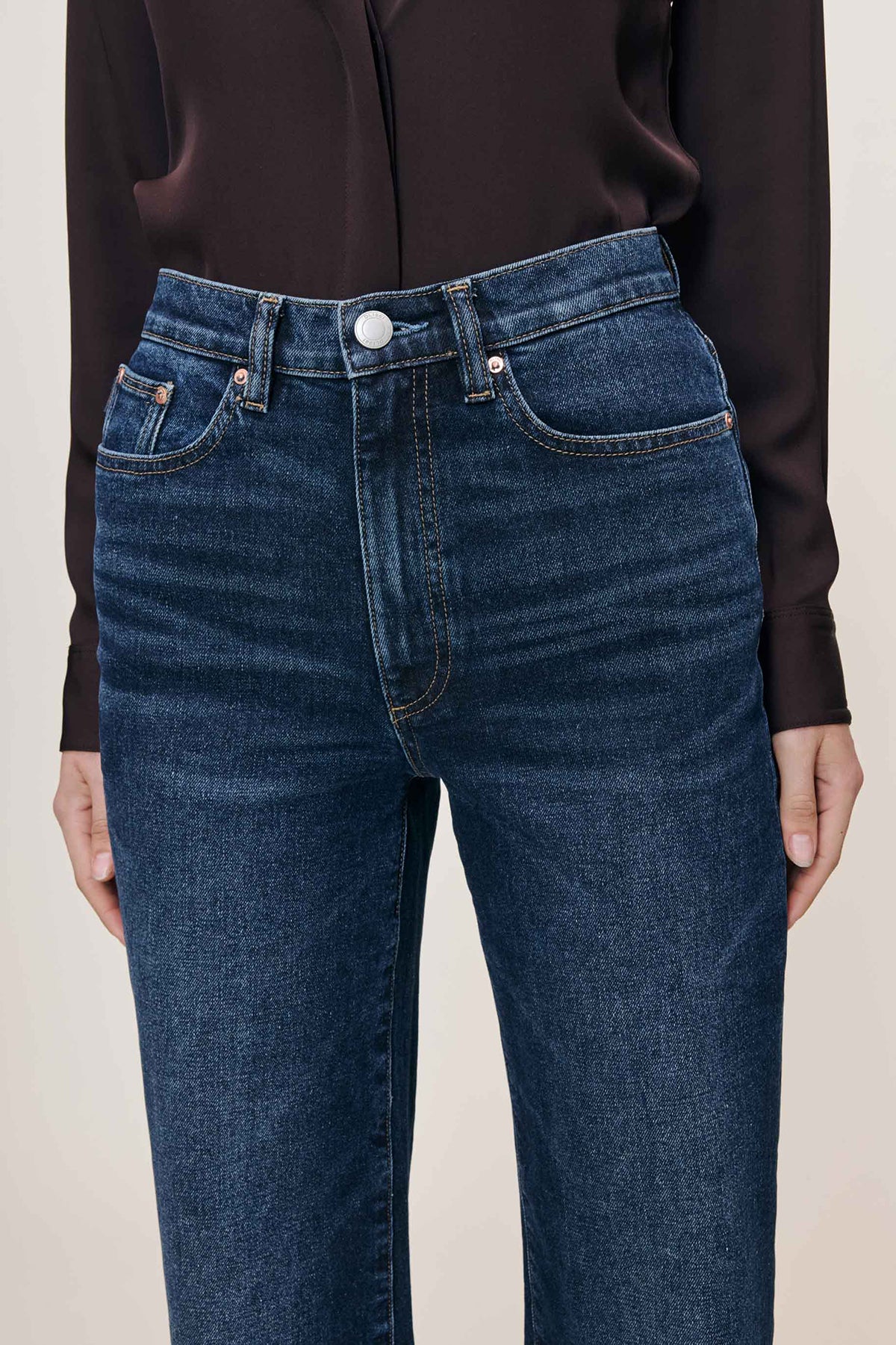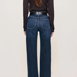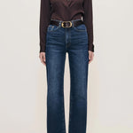 Elevate your denim collection with the Karmine Refined Wide Leg, a sophisticated high-rise silhouette designed for effortless elegance. Featuring a 28" inseam and streamlined leg, this style delivers a polished, contemporary look. The Dark Sea wash—a rich indigo with delicate whiskering—pairs beautifully with silver hardware, copper rivets, and khaki stitching.