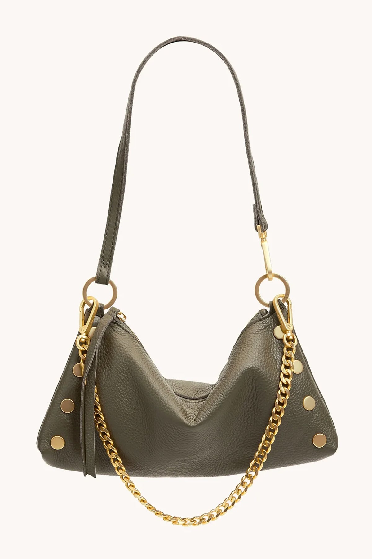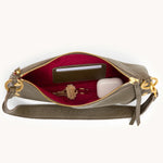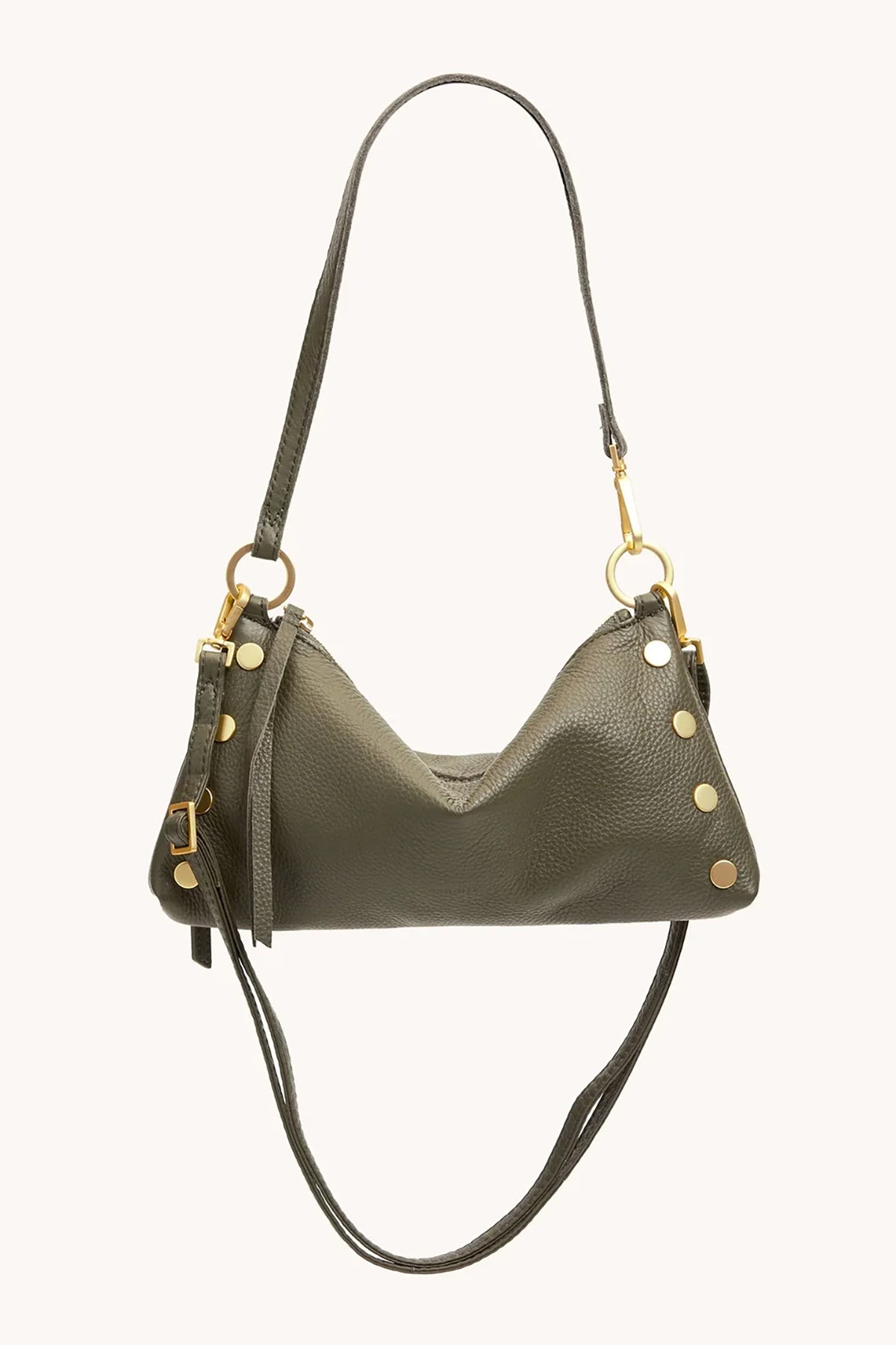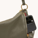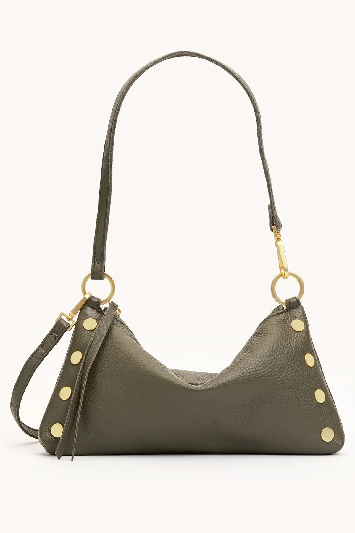 The Kyle is a sage green shoulder bag with gold details and a crossbody strap for easy, stylish wear.