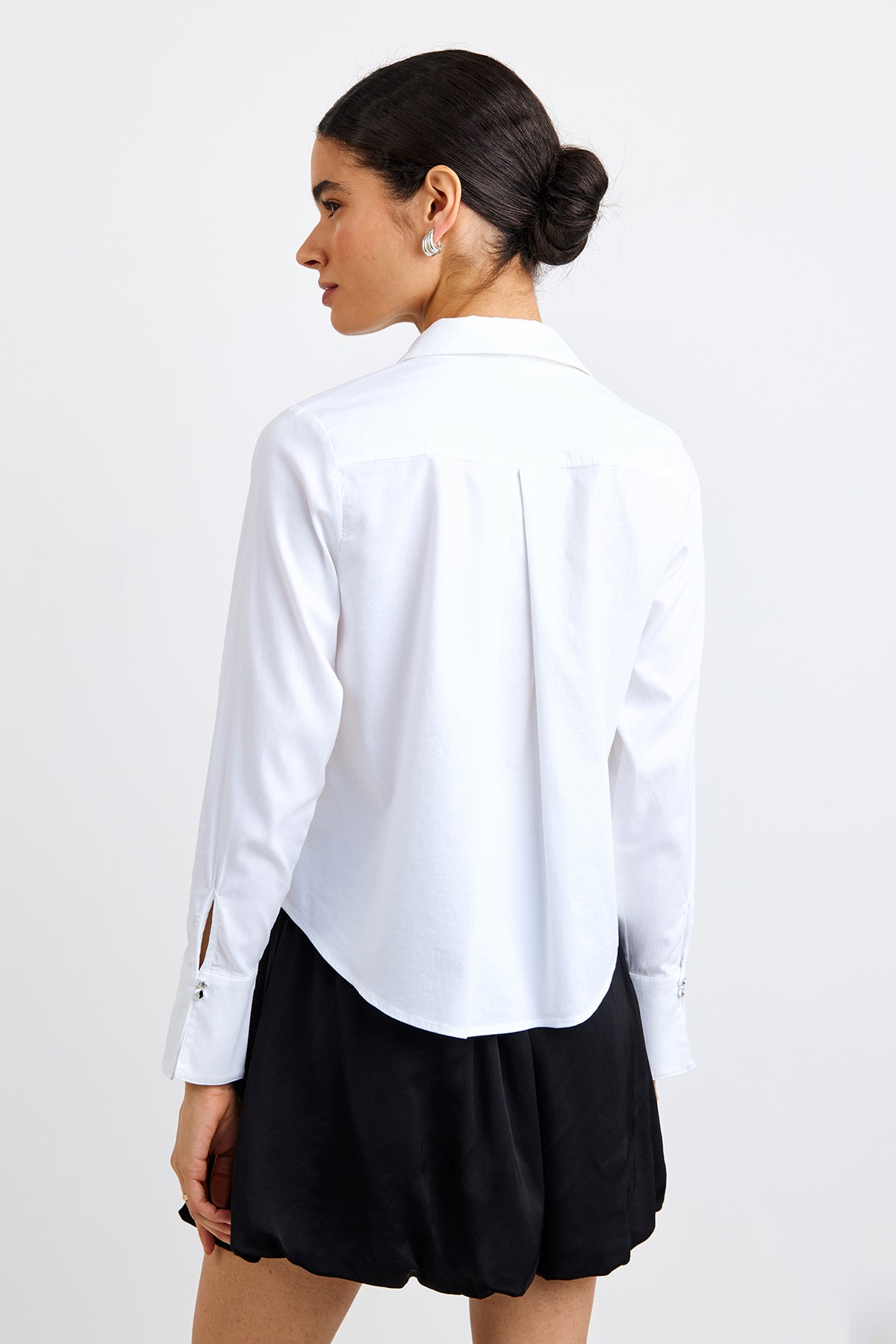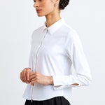 The Long Sleeve Zip Front Shirt features a front zipper and long sleeves for an elevated, stylish look.