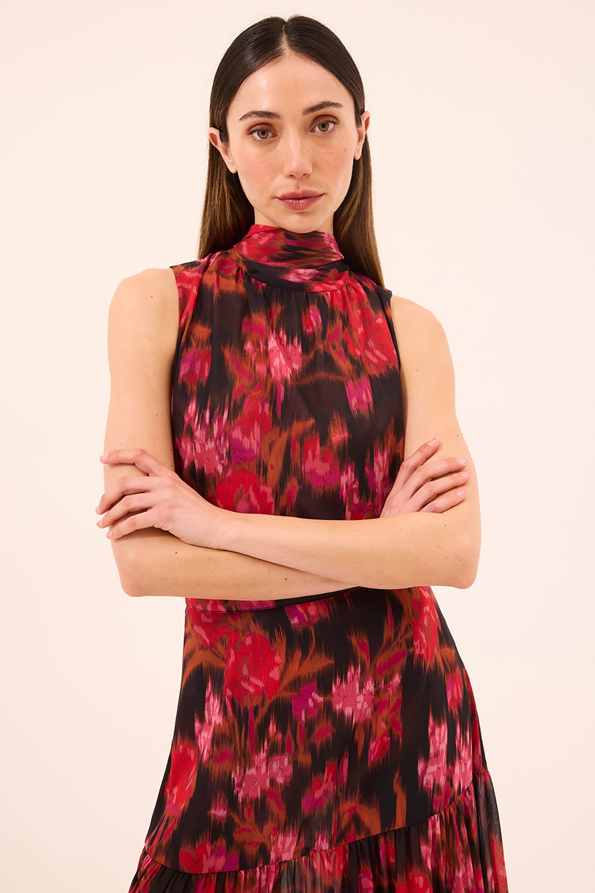 The Luka Top features a stylish mock neck and sleeveless cut with a soft blur floral print. Its modern design is perfect for any occasion and pairs well with both trousers, skirts and jeans.