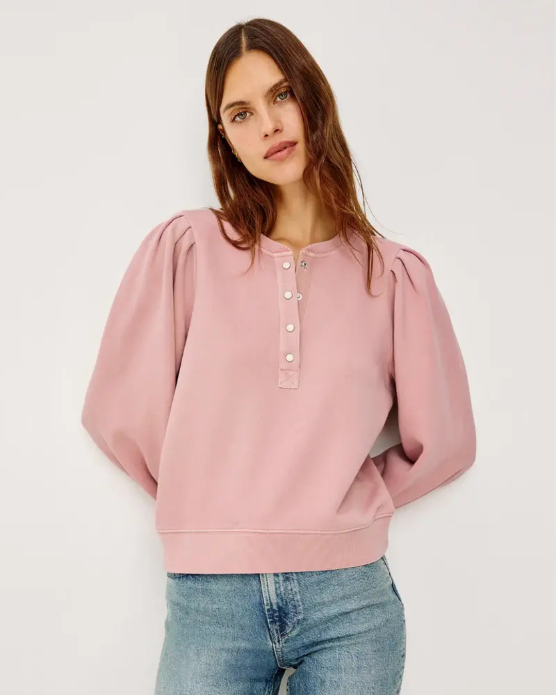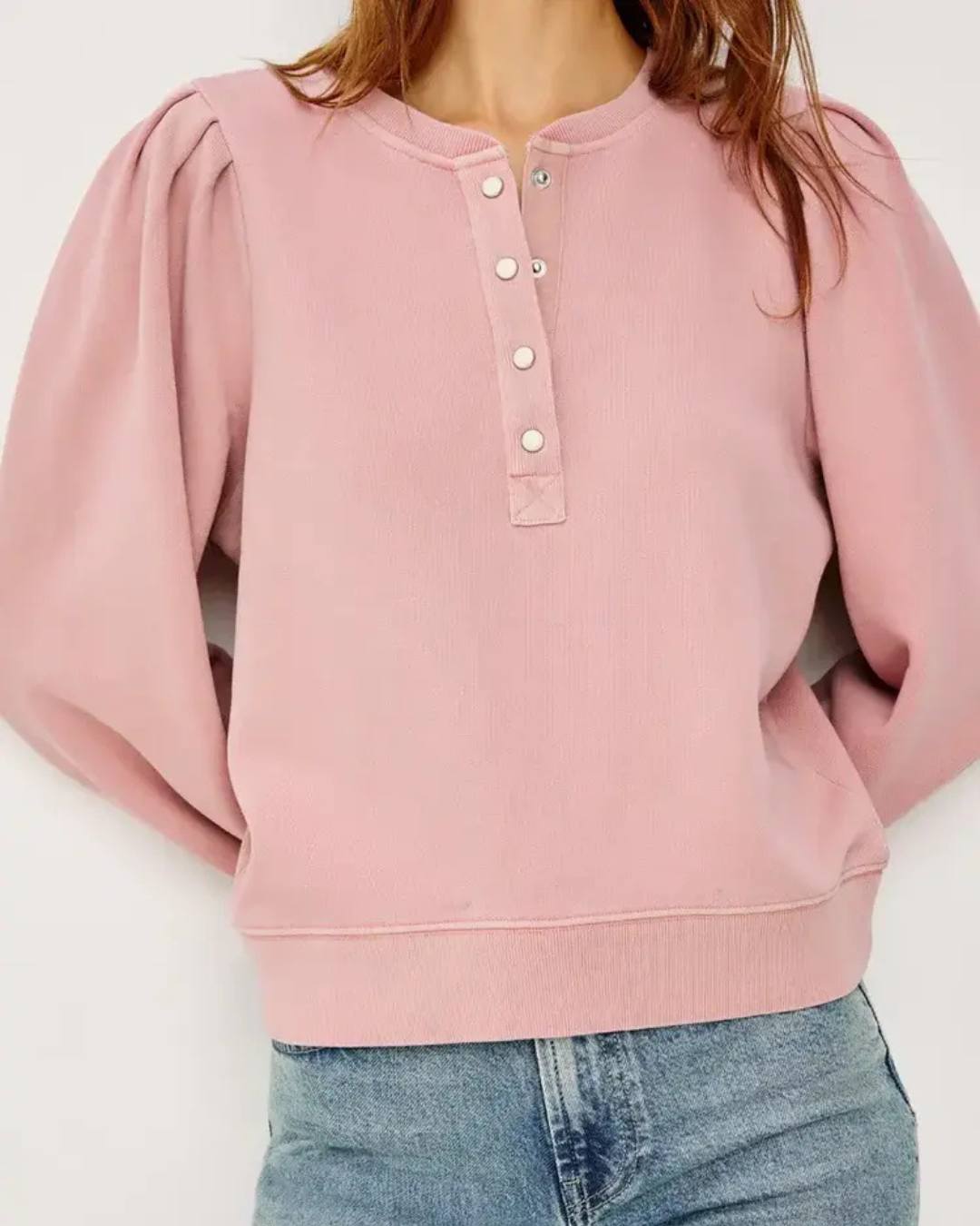 Crafted from pure cotton, this ballet-hued sweatshirt features a distinctive quarter-button closure at the neckline, offering both style and versatility. The soft, breathable fabric makes it perfect for layering or wearing solo, while the refined silhouette works seamlessly from casual outings to relaxed office settings. A timeless piece that transitions beautifully across seasons!