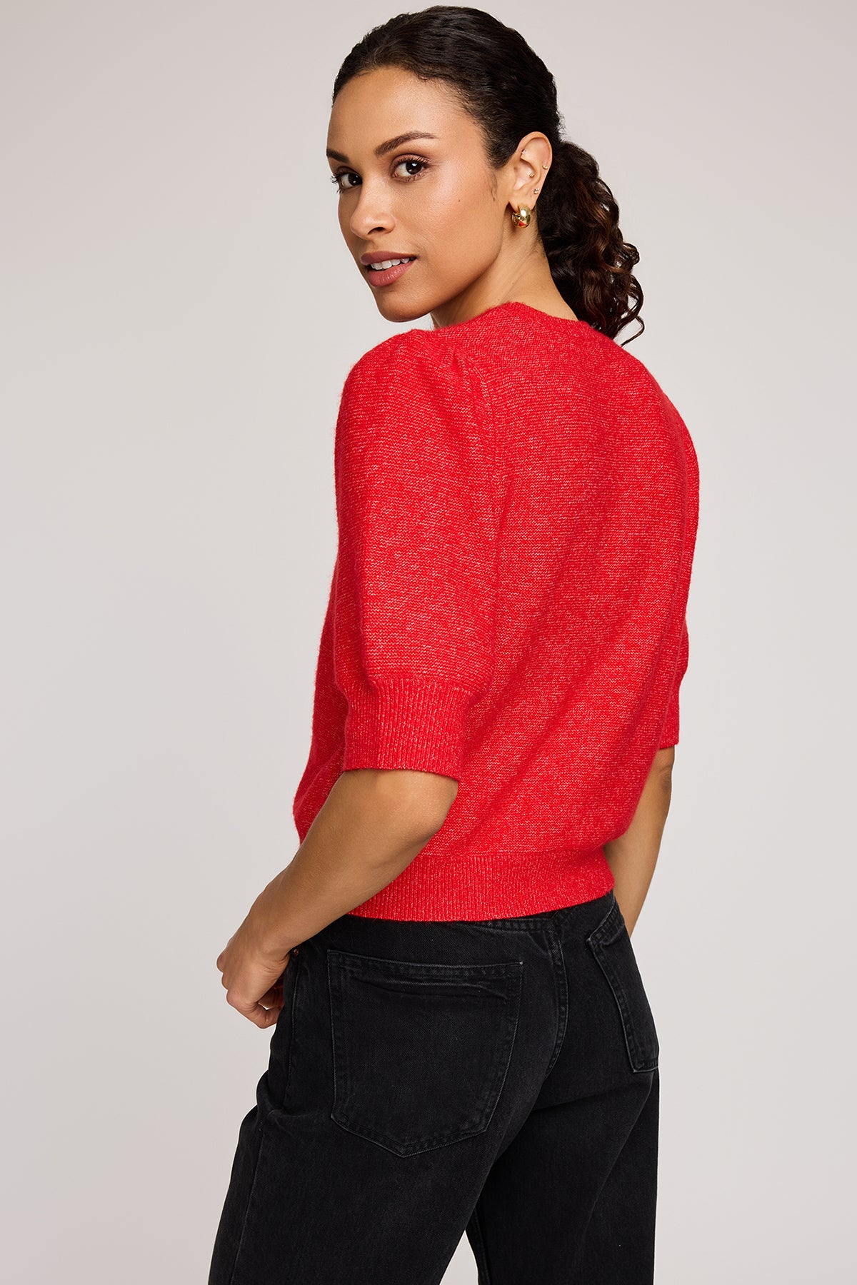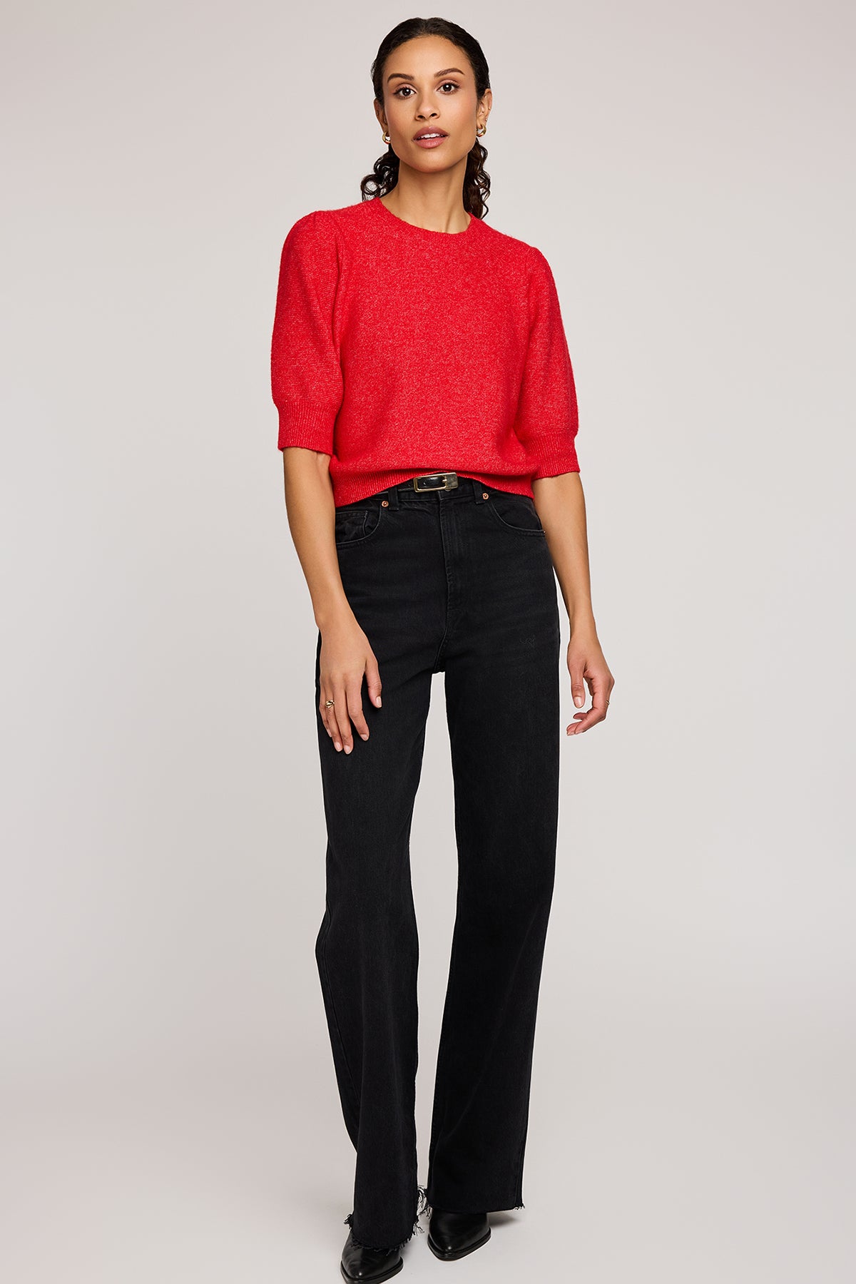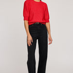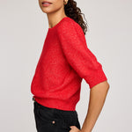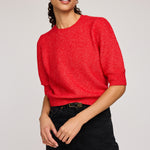 The Marisol red short sleeve sweater brings a vibrant, chic element to your look. Its breathable material and sleek silhouette make it ideal for wearing alone on warm days or layering effortlessly.