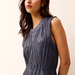 The Mcguire Top features a slip-on silhouette with a metallic knit diamond pattern for a striking look. Its sleeveless, cropped fit adds a modern edge to your wardrobe.