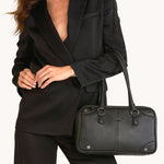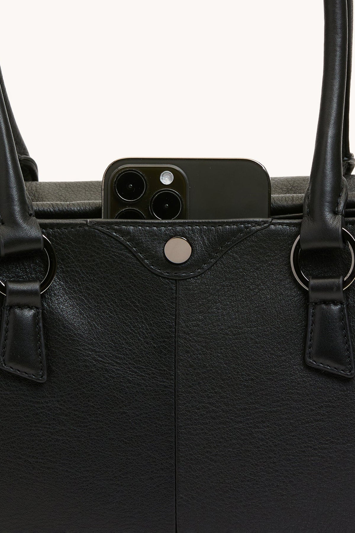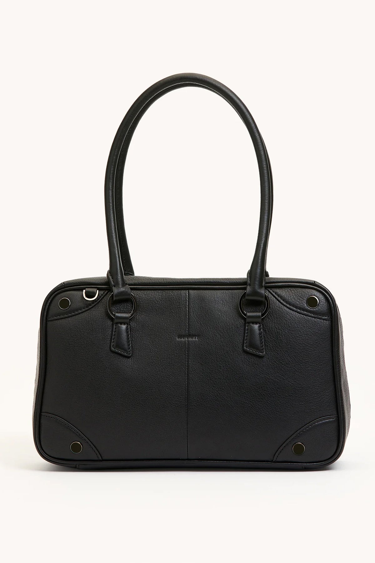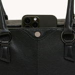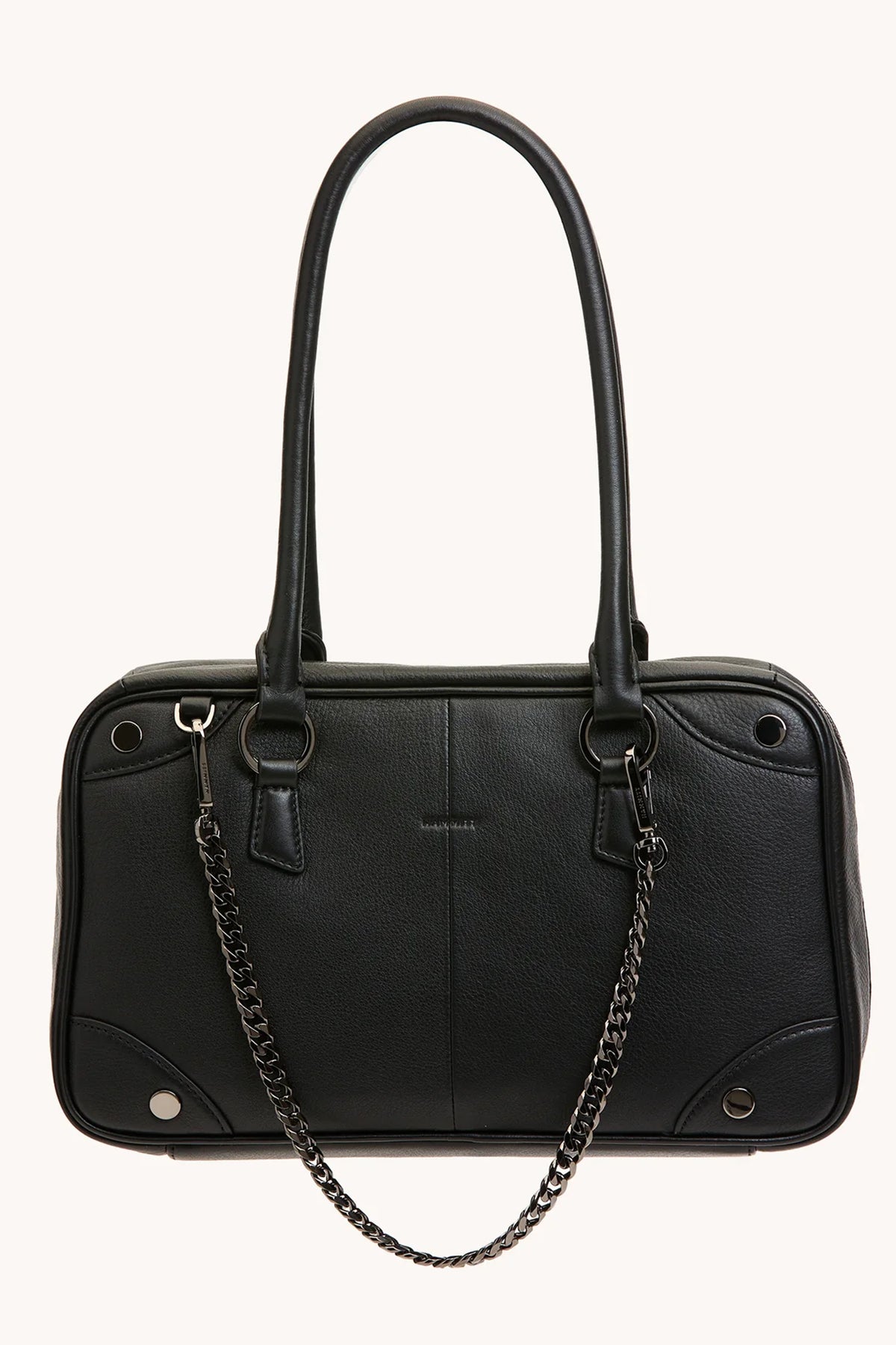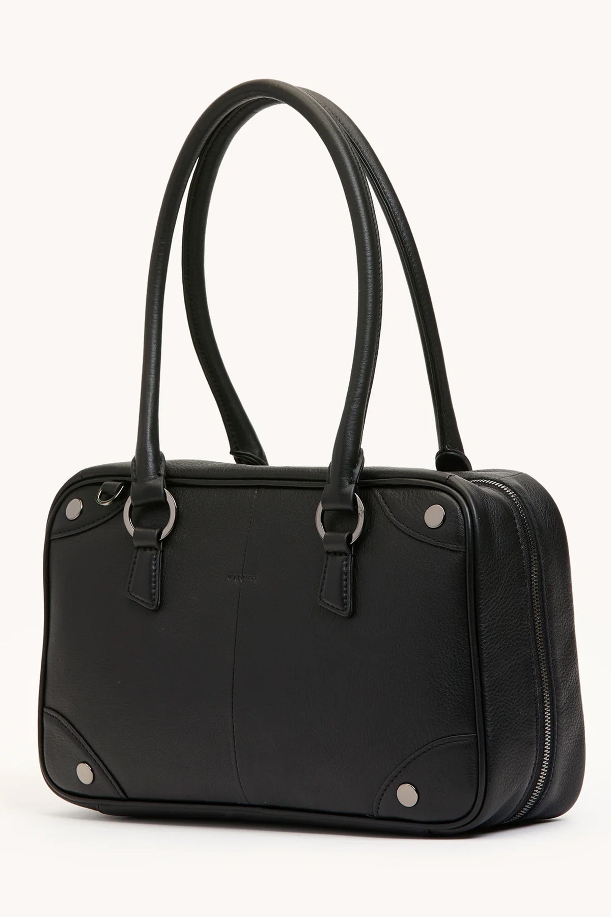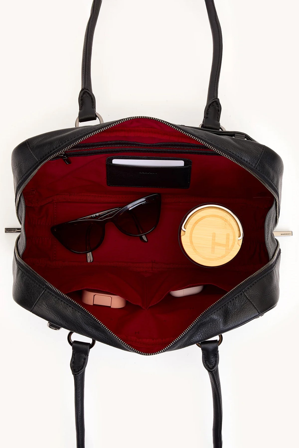A spacious medium bag with doctor-bag polish and bowling-bag attitude. Features a bold handle, corner patches, and wide zip opening for effortless access. Customize with D-rings, and stay organized with interior pockets and card slot.