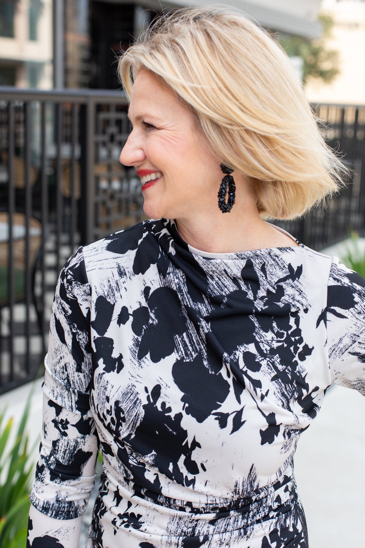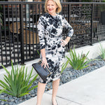 Mock Neck Long Sleeve Floral Print Midi Dressby Addison