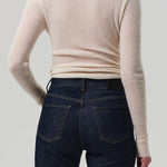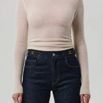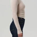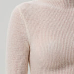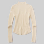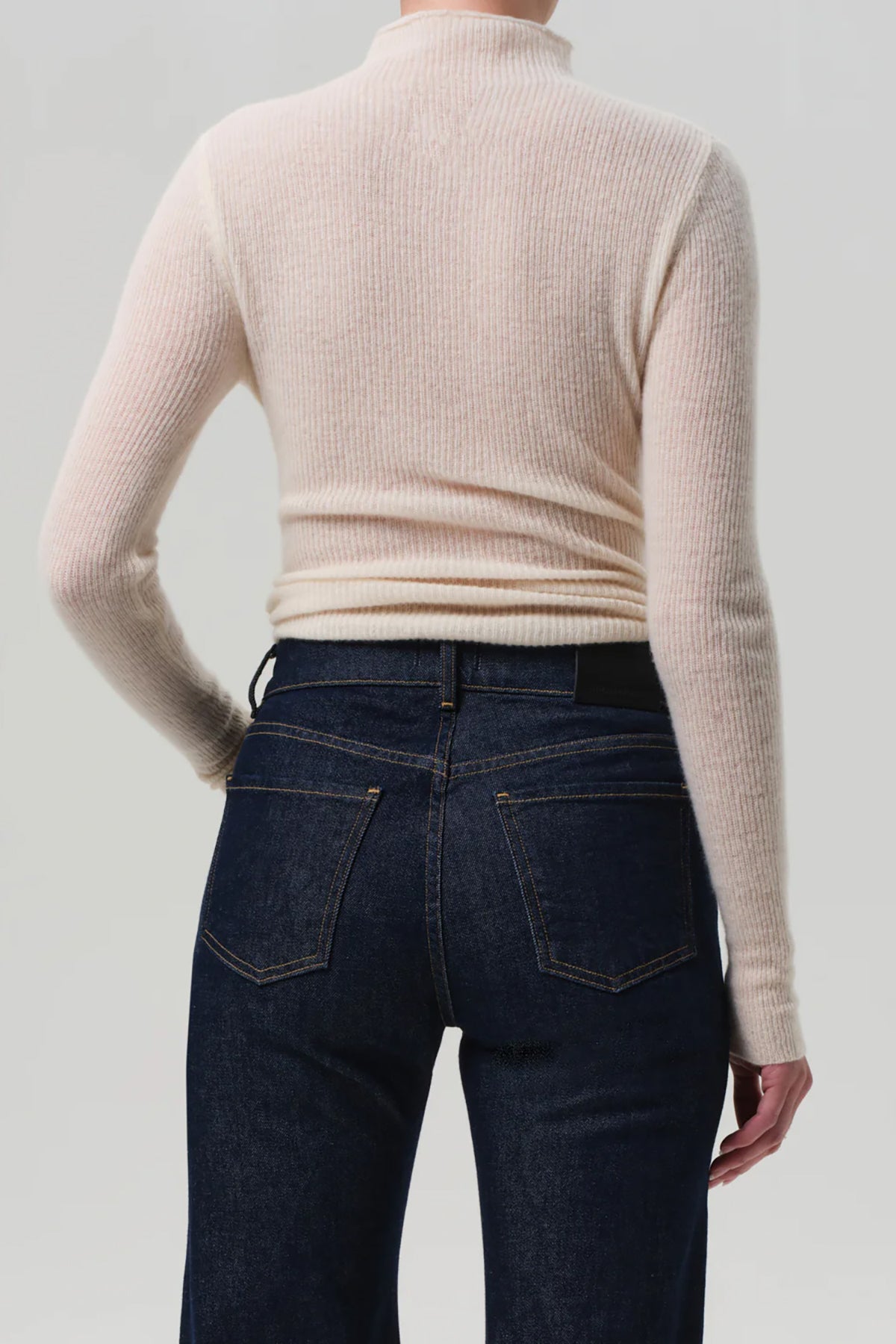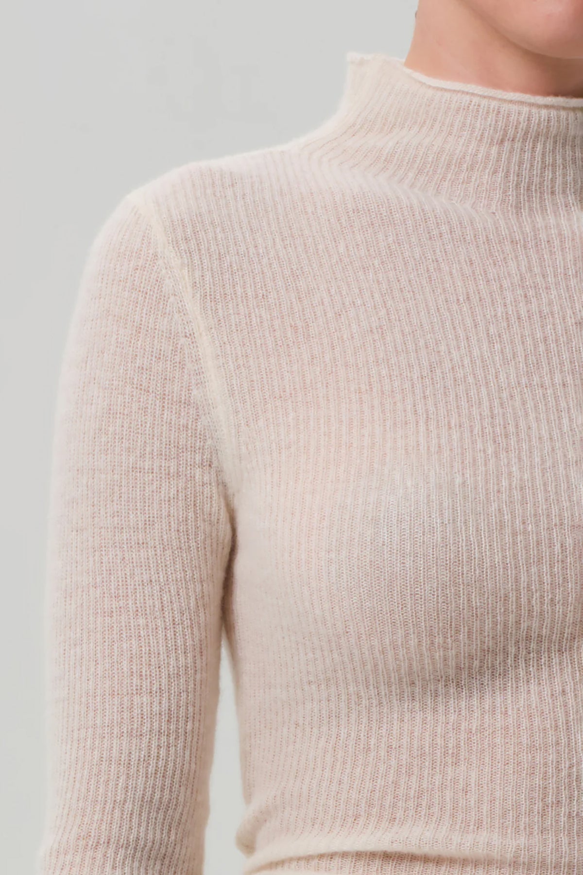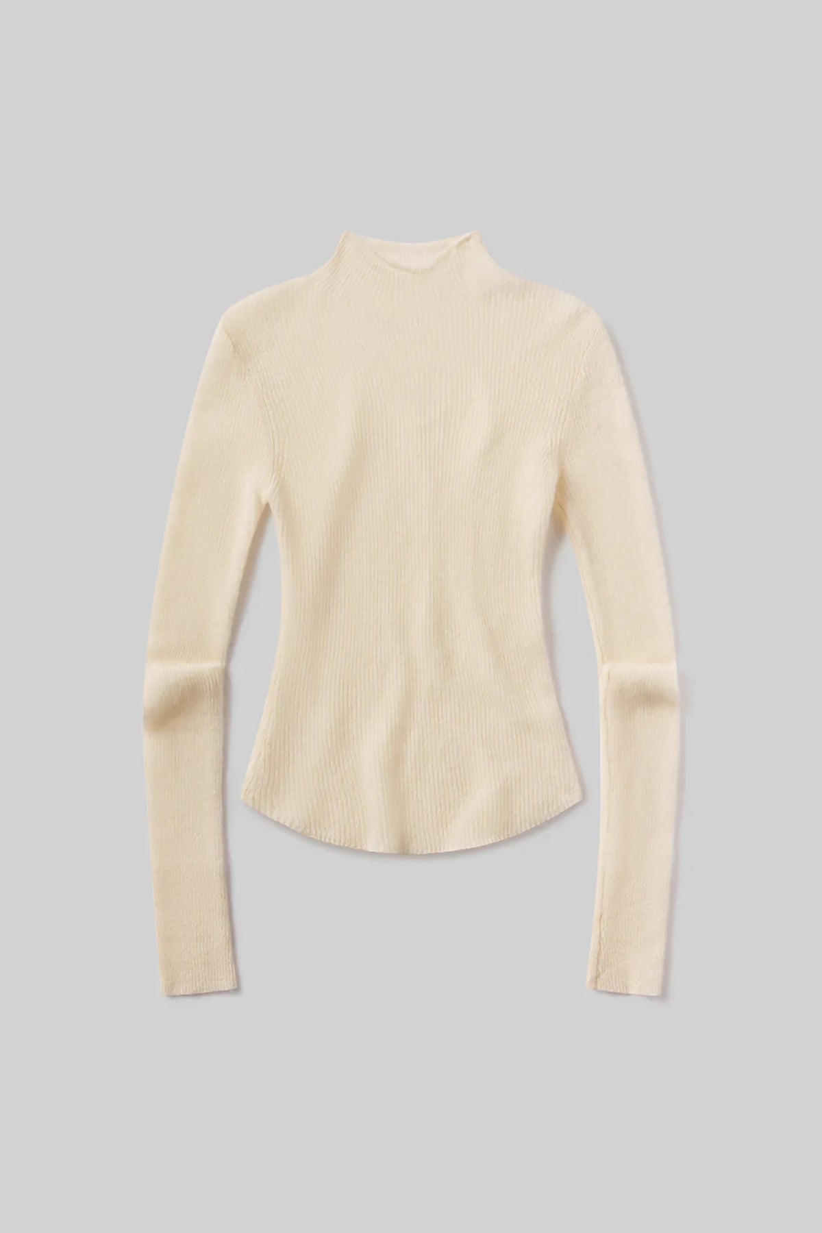 The Nara Turtleneck in bone is a soft, fitted sweater that’s perfect for layering or wearing alone in cooler weather.