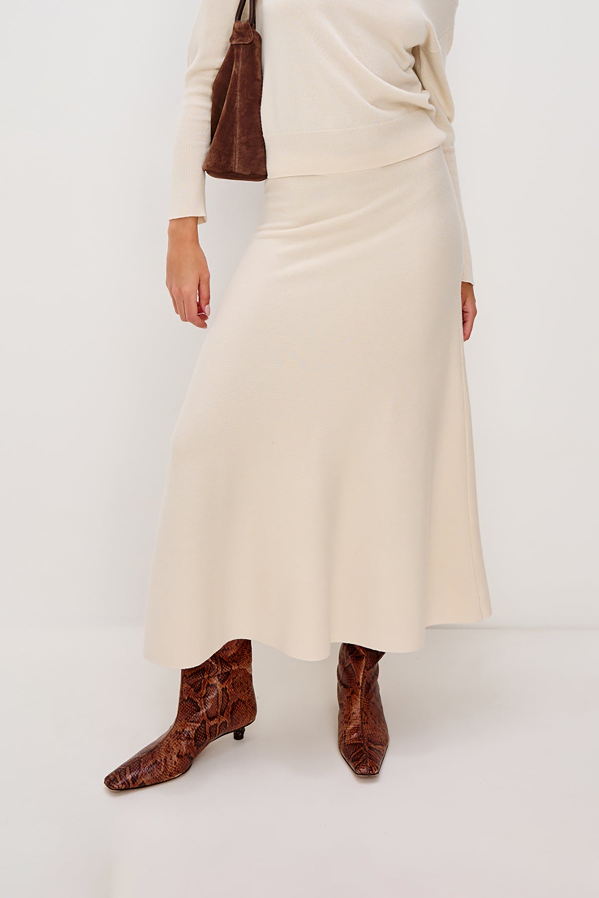 The Odita midi skirt combines refined elegance with everyday comfort. Its high-rise A-line cut flatters while the sumptuous wool blend—featuring merino wool, viscose, nylon, and cashmere—delivers a soft, luxurious feel against the skin. A timeless piece that transitions seamlessly from season to season, this skirt proves that sophistication doesn't require compromise.