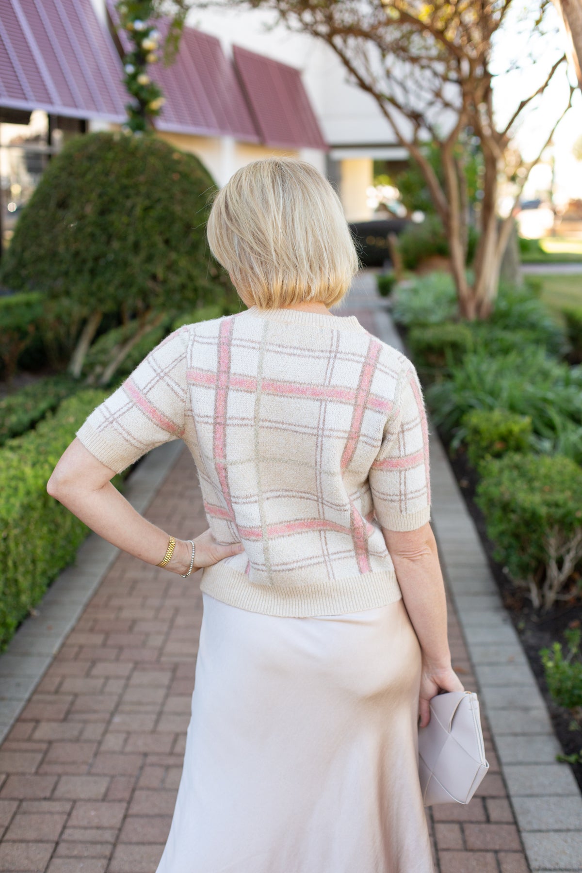 This plaid short sleeve sweater combines timeless style with everyday comfort. Perfect for layering or wearing solo, it pairs effortlessly with any outfit for a polished, put-together look.